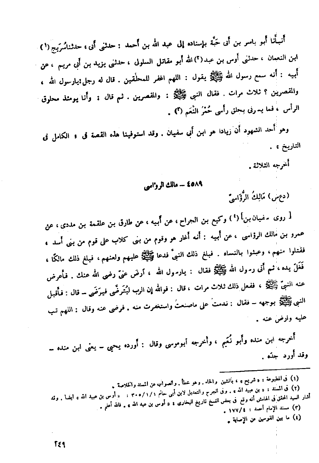 [٢] في المسند: «بن عبيد الله» . وفي الجرح والتعديل لابن أبى حاتم ١/ ١/ ٣٠٥: «أوس بن عبيد الله» أيضا. وقد أشار السيد المحقق في الهامش أنه وقع في بعض النسخ تاريخ البخاري: «أوس بن عبد الله» . فاللَّه أعلم.