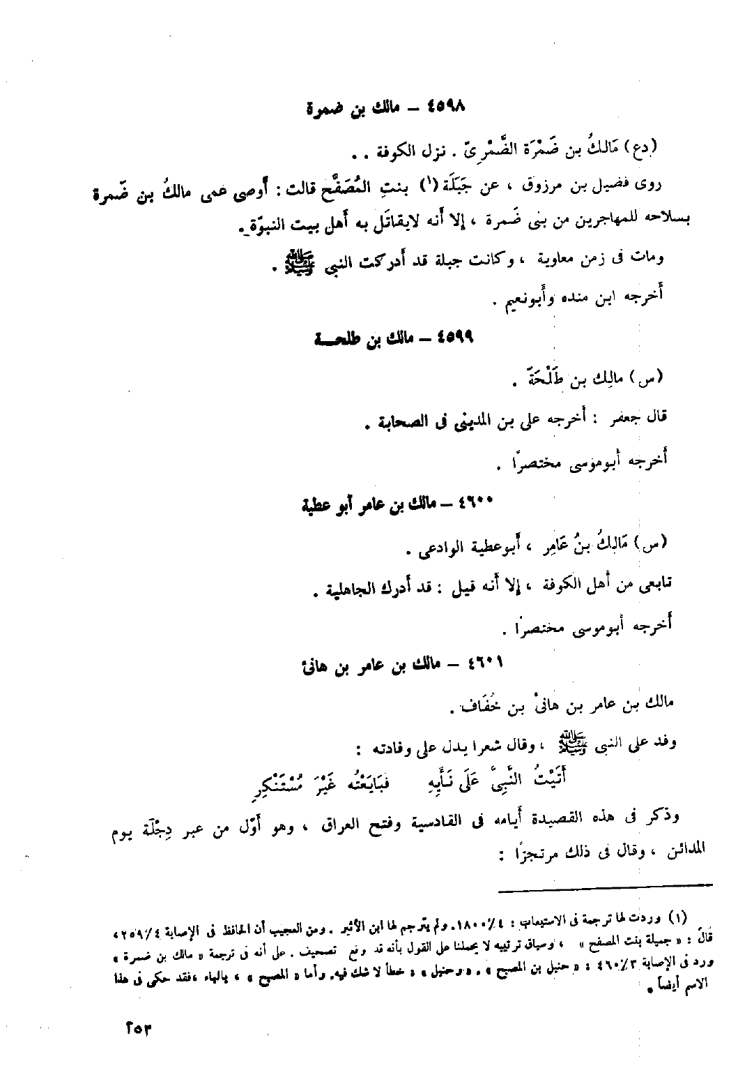 [١] وردت لها ترجمة في الاستيعاب: ٤/ ١٨٠٠. ولم يترجم لها ابن الأثير. ومن العجيب أن الحافظ في الإصابة ٤/ ٢٥٩، قال: «جميلة بنت المصفح» ، وسياق ترتيبه لا يحملنا على القول بأنه قد وقع تصحيف. على أنه في ترجمة «مالك بن ضمرة» ورد في الإصابة ٣/ ٤٦٠: «حنبل بن المصبح» . «وحنبل» : خطأ لا شك فيه. وأما «المصبح» ، بالباء، فقد حكى في هذا الاسم أيضا.