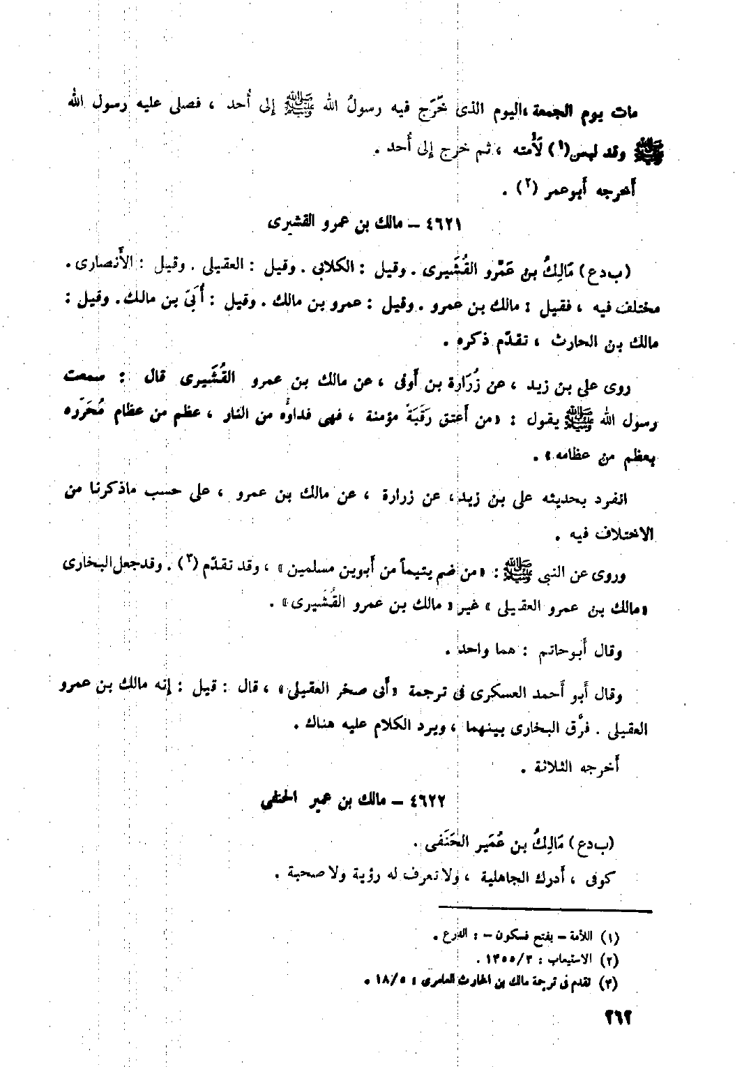 وروى عن النبي صلّى الله عليه وآله وسلم: «من ضم يتيما من أبوين مسلمين» ، وقد تقدم [٣] . وقد جعل البخاري «مالك بْن عَمْرو العقيلي» غير «مالك بْن عَمْرو القشيري» .