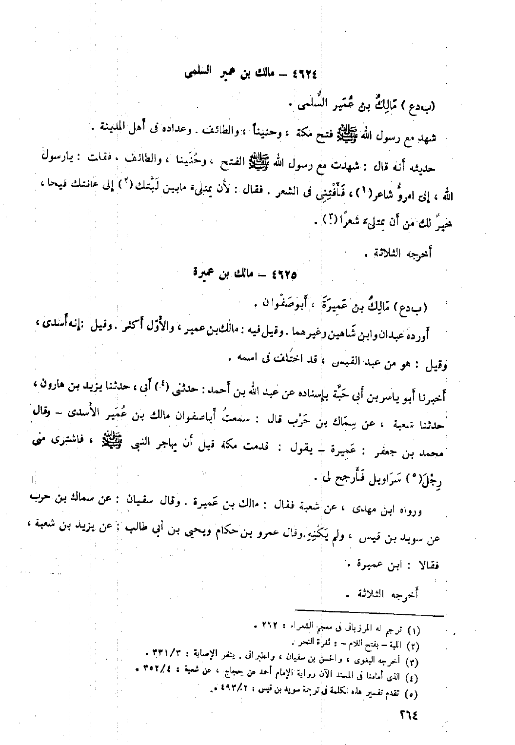 أخبرنا أبو ياسر بن أبي حبة بإسناده عن عبد الله بن أحمد: حدثني [٤] أبي، حَدَّثَنَا يَزِيدُ بْنُ هَارُونَ، حَدَّثَنَا شُعْبَةُ، عَنْ سِمَاكِ بْنِ حَرْبٍ قَالَ: سَمِعْتُ أَبَا صَفْوَانَ مَالِكَ بْنَ عُمَيْرٍ الأَسَدِيَّ- وَقَالَ مُحَمَّدُ بْنُ جَعْفَرٍ: عُمَيْرَةُ- يَقُولُ: قَدِمْتُ مَكَّةَ قَبْلَ أَنْ يهاجر النبي صلّى الله عليه وآله وَسَلَّمَ، فَاشْتَرَى مِنِّي رِجْلَ [٥] سَرَاوِيلَ فَأَرْجَحَ لِي.