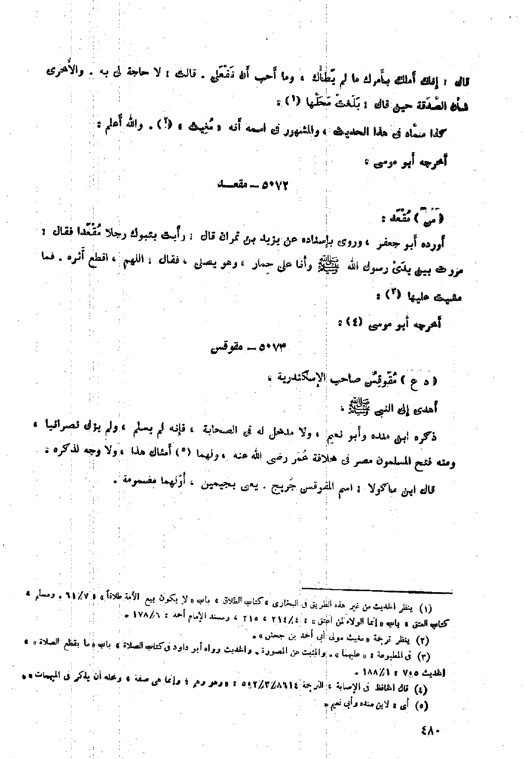 ذكره ابن منده وَأَبُو نعيم، ولا مدخل لَهُ فِي الصحابة، فإنه لَمْ يسلم، ولم يزل نصرانيا، ومنه فتح المسلمون مصر فِي خلافة عمر رضي اللَّه عَنْهُ، ولهما [٥] أمثال هَذَا، ولا وجه لذكره.