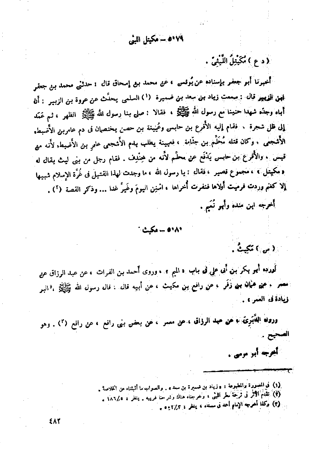 أَخْبَرَنَا أَبُو جَعْفَر بِإِسْنَادِهِ عَنْ يونس، عَنِ مُحَمَّدِ بْنِ إِسْحَاقَ قَالَ: حَدَّثَنِي مُحَمَّدُ بْنُ جعفر ابن الزُّبَيْرِ قَالَ: سَمِعْتُ زِيَادَ بْنَ سَعْدِ بْنِ ضُمَيْرَةَ [١] السُّلَمِيَّ يُحَدِّثُ عَنْ عُرْوَةَ بْنِ الزُّبَيْرِ: أَنَّ أَبَاهُ وَجَدَّهُ شَهِدَا حُنَيْنًا مَعَ رَسُول اللَّهِ صَلَّى اللَّهُ عَلَيْهِ وَسَلَّمَ، فَقَالا: صَلَّى بنا رسول الله صلى الله عليه وسلم الظُّهْرَ، ثُمَّ عَمَدَ إِلَى ظِلِّ شَجَرَةٍ، فَقَامَ إِلَيْهِ الأَقْرَعُ بْنُ حَابِسٍ وَعُيَيْنَةُ بْنُ حِصْنٍ يَخْتَصِمَانِ فِي دَمِ عَامِرِ بْنِ الأَضْبَطِ، الأَشْجَعِيِّ، وَكَانَ قَتَلَهُ مُحَلِّمُ بْنُ جَثَّامَةَ، فَعُيَيْنَةُ يَطْلُبُ بِدَمِ الأَشْجَعِيِّ عَامِرِ بْنِ الأَضْبَطِ لأَنَّهُ مِنْ قَيْسٍ، وَالأَقْرَعُ بْنُ حَابِسٍ يَدْفَعُ عَنْ محلّم لأَنَّهُ مِنْ خِنْدِفٍ. فَقَامَ رَجُلٌ مِنْ بَنِي لَيْثٍ يُقَالُ لَهُ «مُكَيْتِلٌ» ، مَجْمُوعٌ قَصِيرٌ، فَقَالَ: يَا رَسُولَ اللَّهِ، مَا وَجَدْتُ لِهَذَا الْقَتِيلِ فِي غُرَّةِ الإِسْلامِ شَبِيهًا إِلا كَغَنَمٍ وَرَدَتْ فرميت أولاها فنفرت أخراها، اسنن اليوم وغير غَدًا ... وَذَكَرَ الْقِصَّةَ [٢] .
