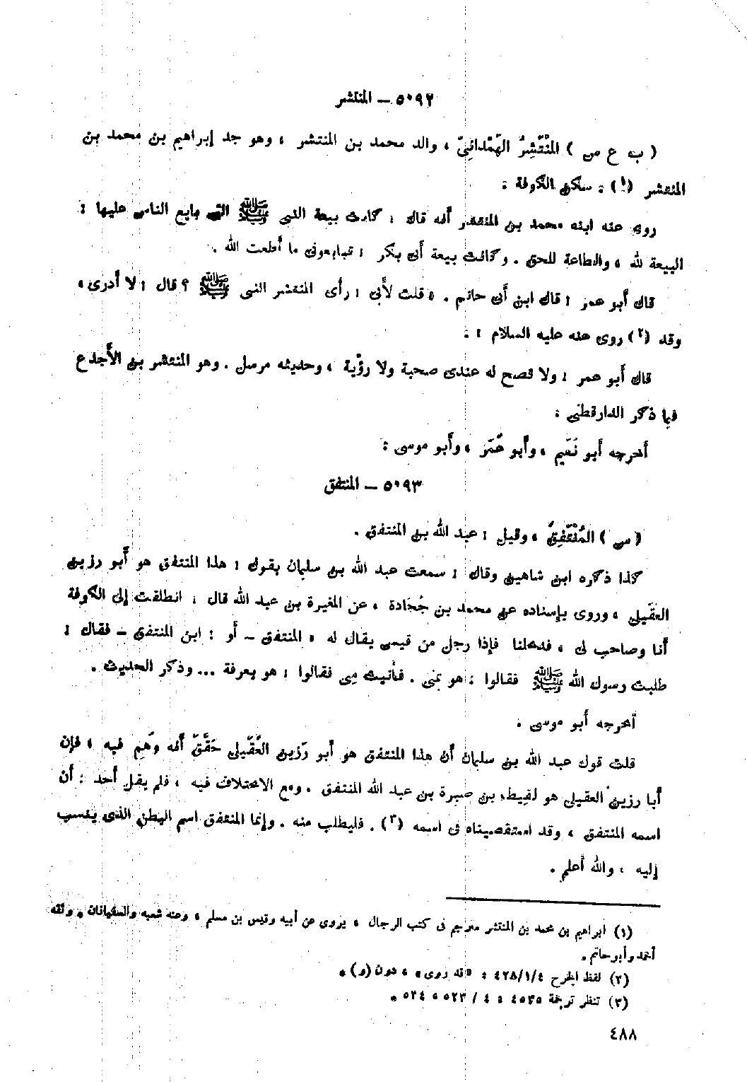 قلت قول عَبْد اللَّهِ بْن سُلَيْمَان أن هَذَا المنتفق هُوَ أَبُو رزين العقيلي حقق أَنَّهُ وهم فِيهِ، فإن أبا رزين العقيلي هُوَ لقيط بْن صبرة بْن عَبْد اللَّهِ المنتفق. ومع الاختلاف فِيهِ، فلم يقل أحد: أن اسمه المنتفق، وقد استقصيناه فِي اسمه [٣] . فليطلب مِنْه. وَإِنما المنتفق اسم البطن الّذي ينسب إليه، والله أعلم.