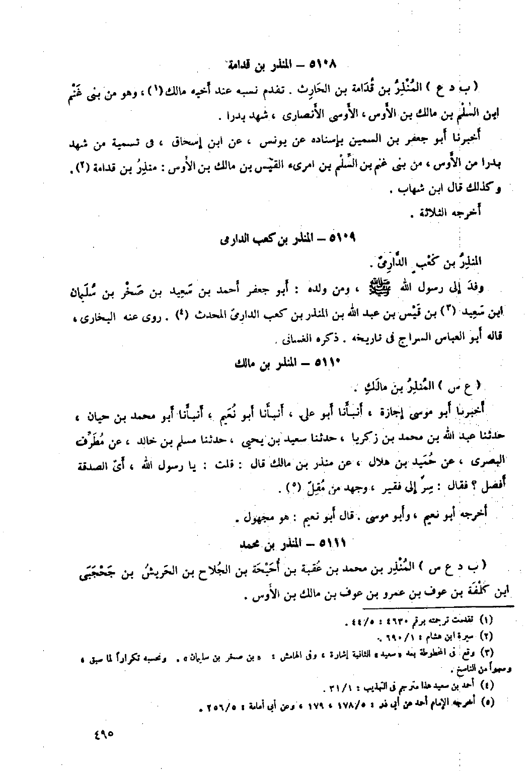 أَخْبَرَنَا أَبُو جَعْفَرِ بْنُ السَّمِينِ بِإِسْنَادِهِ عَنْ يونس، عَنِ ابْنِ إِسْحَاق، فِي تسمية مَنْ شَهِدَ بَدْرًا مِنَ الأَوْسِ، مِنْ بَنِي غنم بْن السلم بْن امرئ القيس بْن مَالِكِ بْنِ الأَوْسِ: مُنْذِرُ بْنُ قُدَامَةَ [٢] .