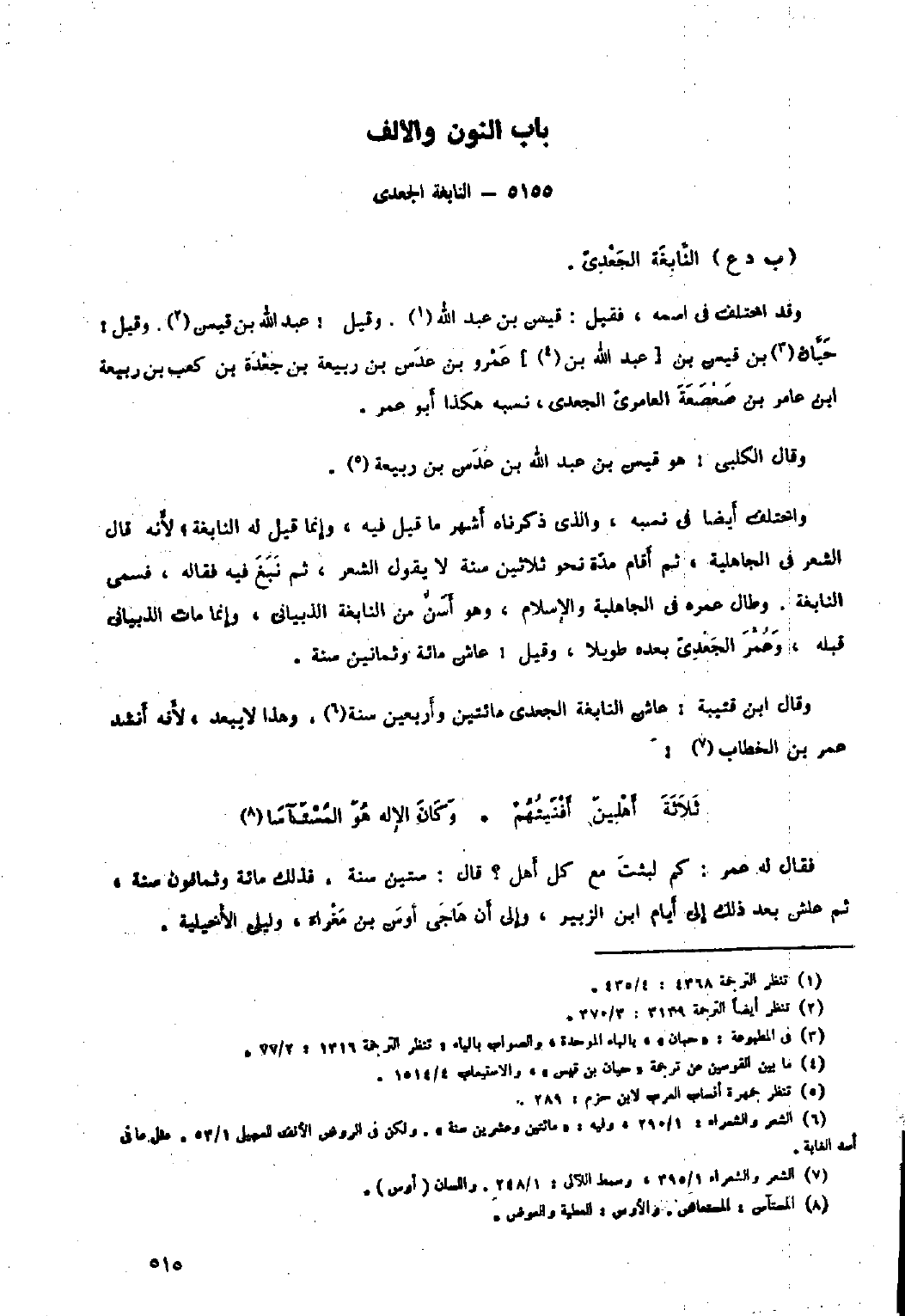 وقال ابن قُتَيْبَة: عاش النابغة الجعدي مائتين وأربعين سنة [٦] ، وهذا لا يبعد، لأنه أنشد عمر بْن الخطاب [٧] :