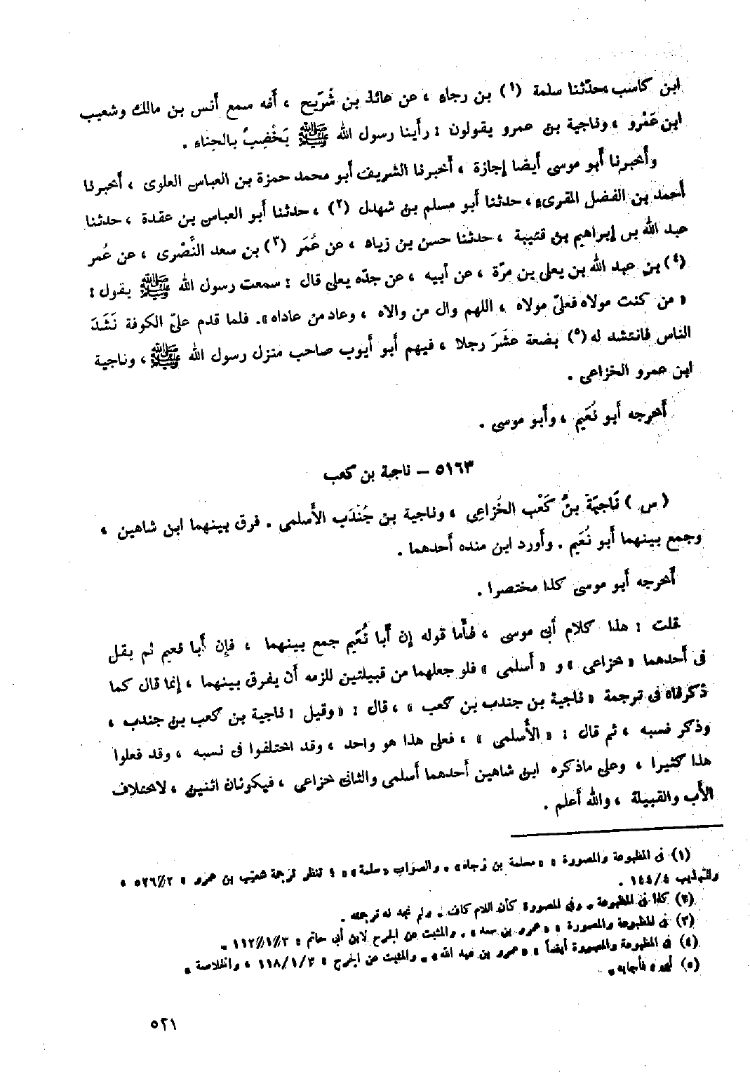 قلت: هذا كلام أبي موسى، فأما قَوْله إن أبا نعيم جمع بينهما، فإن أبا نعيم لَمْ يقل في أحدهما «خزاعيّ» و «أسلمى» فلو جعلهما من قبيلتين للزمه أن يفرق بينهما، إنما قَالَ كما ذكرناه فِي ترجمة «ناجية بن جندب بن كعب» ، قَالَ: «وقيل: ناجية بن كعب بن جندب، وذكر نسبه، ثُمَّ قَالَ: «الأسلمي» ، فعلى هَذَا هُوَ واحد، وقد اختلفوا فِي نسبه، وقد فعلوا هَذَا كثيرا، وَعَلَى ما ذكره ابن شاهين أحدهما أسلمي والثاني خزاعي، فيكونان اثنين، لاختلاف الأب والقبيلة، والله أعلم.