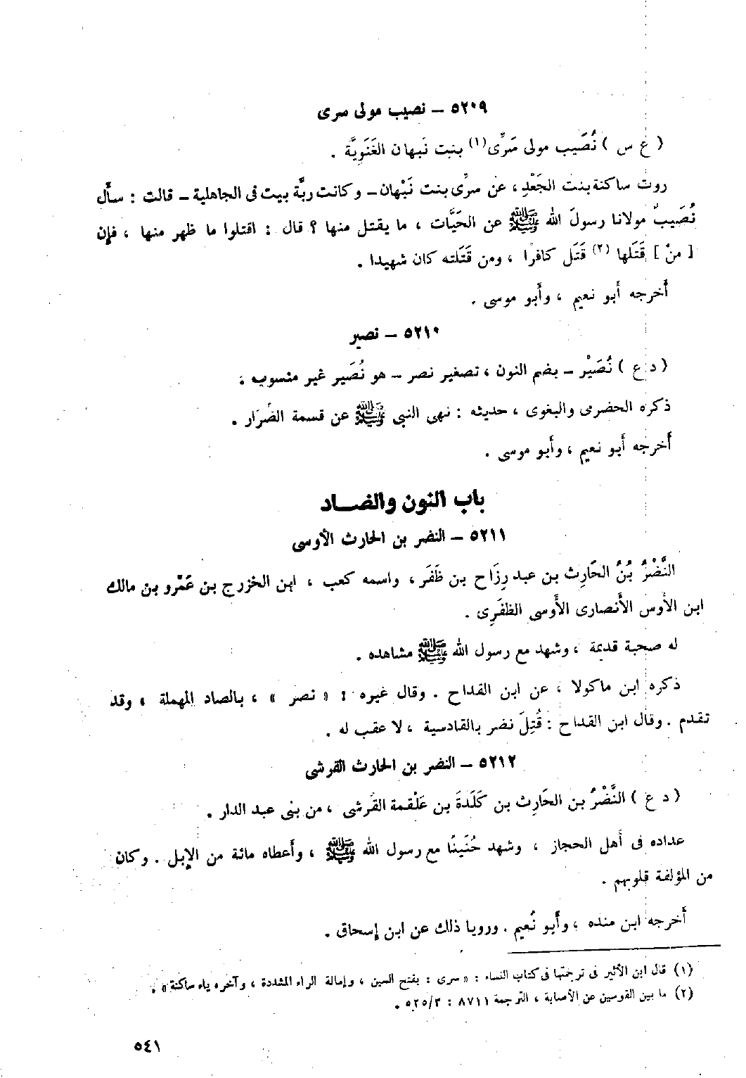 ذكره ابن ماكولا، عن ابن القداح. وقال غيره: «نصر» ، بالصاد المهملة، وقد تقدم. وقال ابن القداح: قتل نضر بالقادسية، لا عقب له.