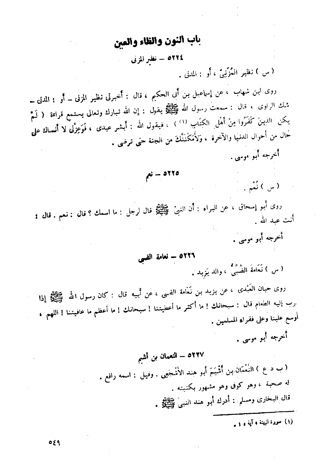 روى ابن شهاب، عن إِسْمَاعِيل بن أبي الحكيم، قَالَ: أَخْبَرَنِي نظير المزني- أو: المدني- شك الراوي، قال: سمعت رسول الله صلى الله عليه وسلم يقول: إن الله تبارك وتعالى يستمع قراءة لَمْ يَكُنِ الَّذِينَ كَفَرُوا مِنْ أَهْلِ الْكِتابِ ٩٨: ١ [١] ، فيقول الله: أبشر عبدي، فو عزّتى لا أنساك عَلَى حال من أحوال الدُّنْيَا والآخرة، ولأمكننك من الجنة حَتَّى ترضى. أخرجه أبو موسى.