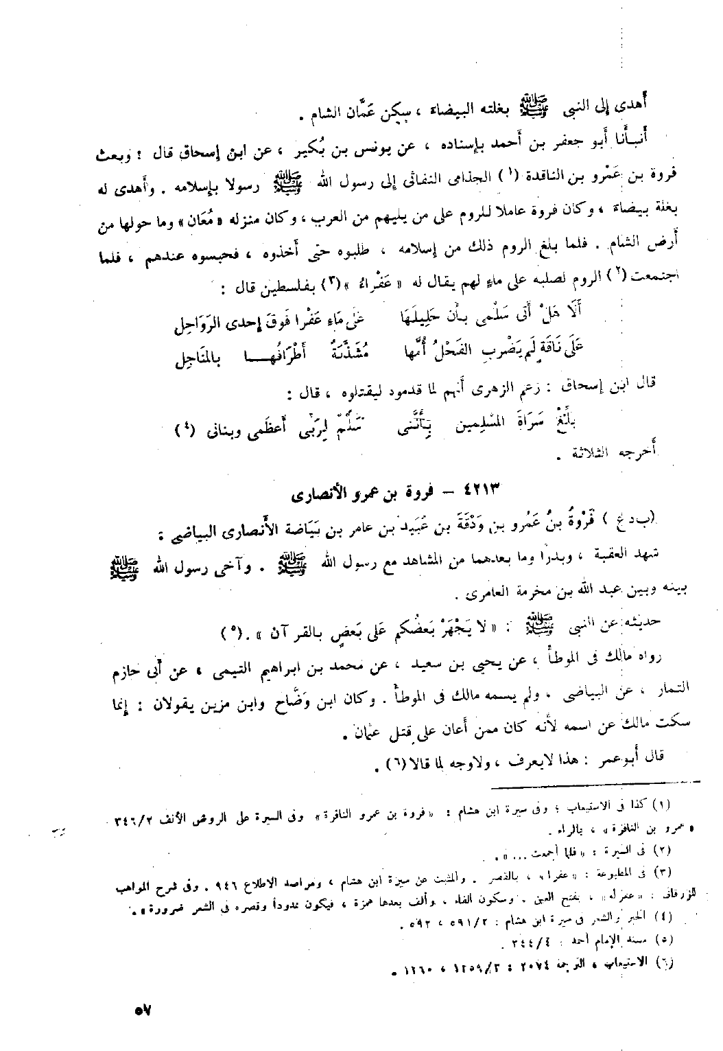 [١] كذا في الاستيعاب، وفي سيرة ابن هشام: «فروة بن عمرو النافرة» وفي السيرة على الروض الأنف ٢/ ٣٤٦ «عمرو بن النافرة» ، بالراء.