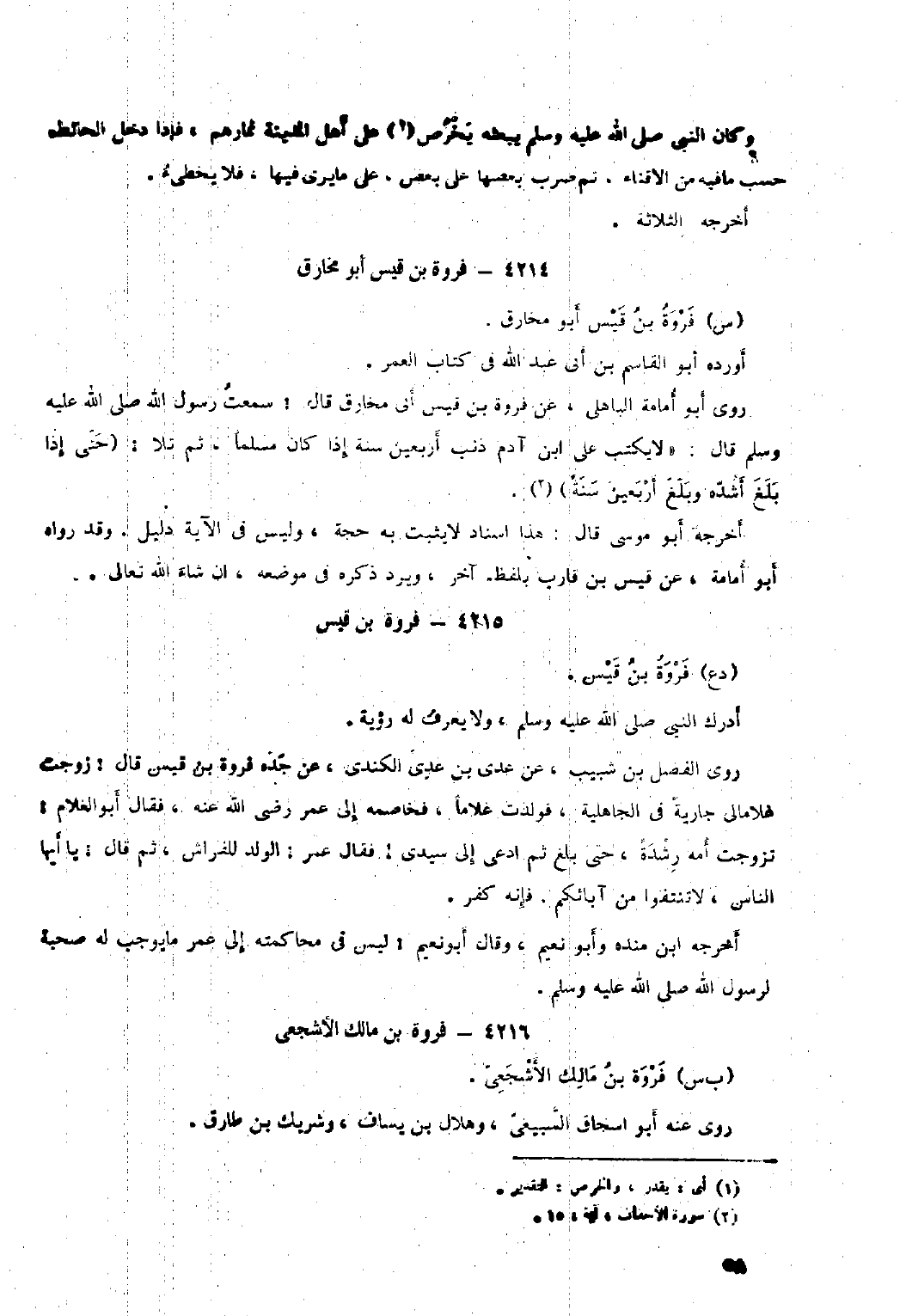 روى أَبُو أمامة الباهلي، عَنْ فروة بْن قيس أَبِي مخارق قَالَ: سَمِعْتُ رسول الله صلى الله عليه وآله وَسَلَّمَ قَالَ: «لا يكتب عَلَى ابْن آدم ذنب أربعين سنة إِذَا كَانَ مسلمًا، ثُمَّ تلا: (حَتَّى إِذَا بَلَغَ أَشُدَّهُ وَبَلَغَ أَرْبَعِينَ سنة) [٢] .