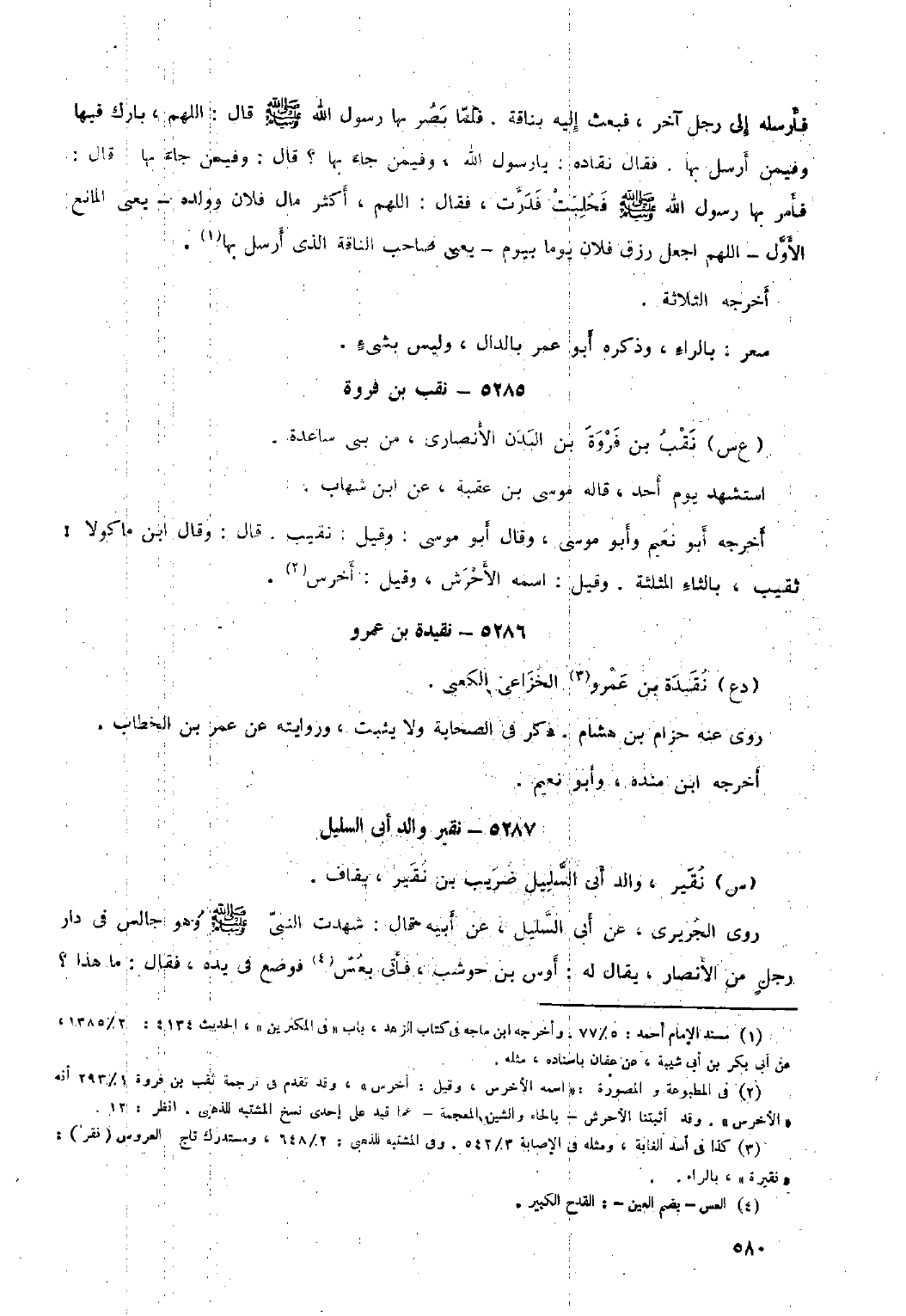 فأرسله إلى رجل آخر، فبعث إليه بناقة. فلما بصر بِهَا رسول الله صلى الله عَلَيْهِ وسلم قَالَ: اللَّهمّ، بارك فيها وفيمن أرسل بِهَا. فقال نقادة: يا رَسُول اللَّهِ، وفيمن جاء بِهَا؟ قَالَ: وفيمن جاء بِهَا قَالَ: