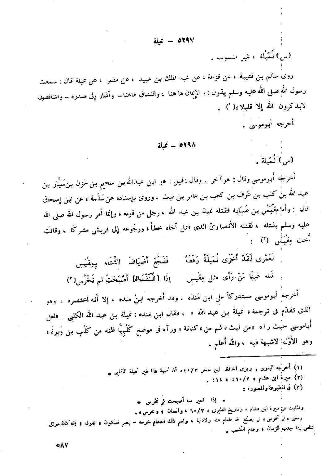 [١] أخرجه البغوي. ويرى الحافظ ابن حجر ٣/ ٥٤٤ أن نميلة هذا غير نميلة الكلبي.