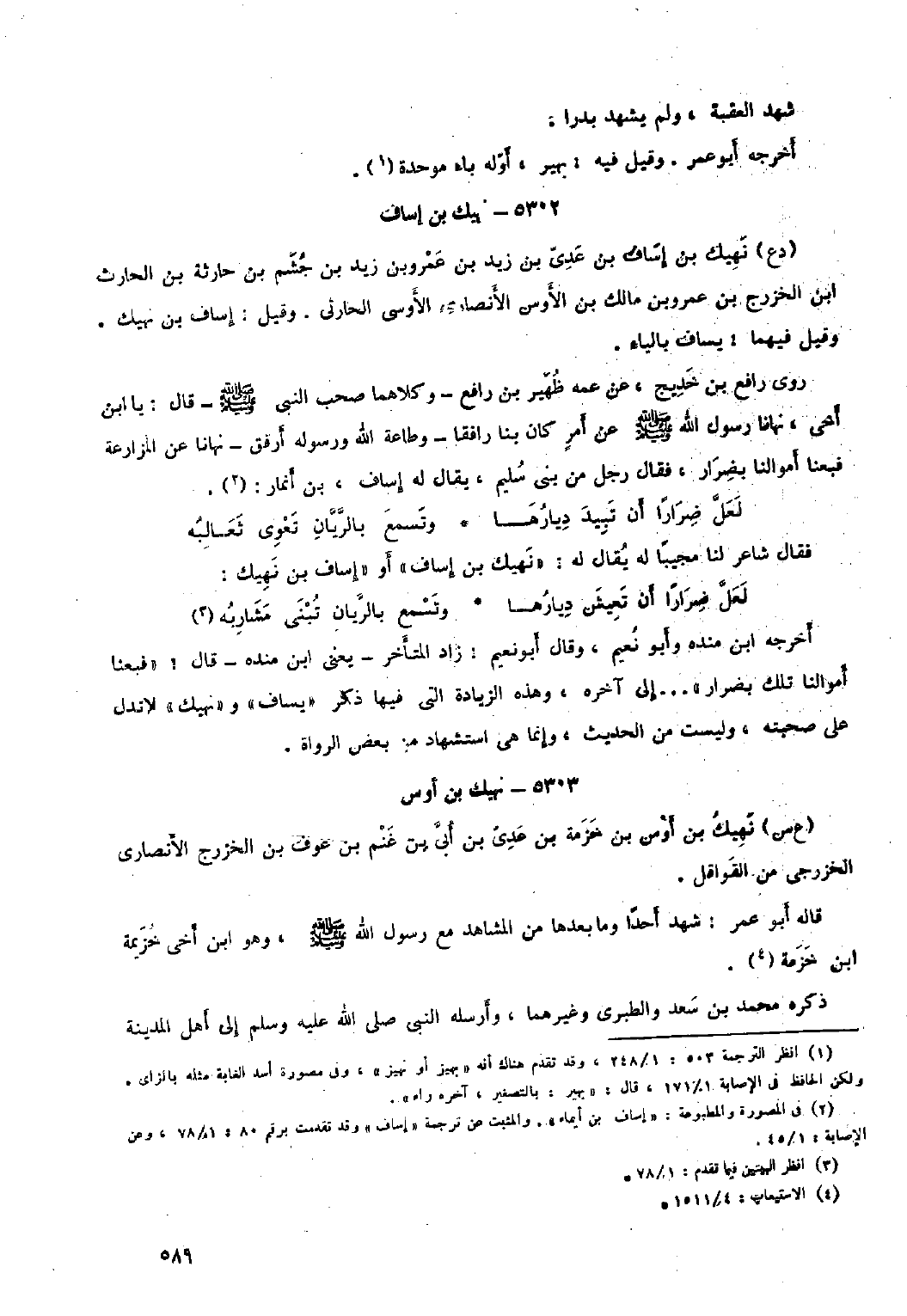 [٢] في المصورة والمطبوعة: «إساف بن إيماء» . والمثبت عن ترجمة «إساف» وقد تقدمت برقم ٨٠: ١/ ٧٨، وعن الإصابة: ١/ ٤٥.