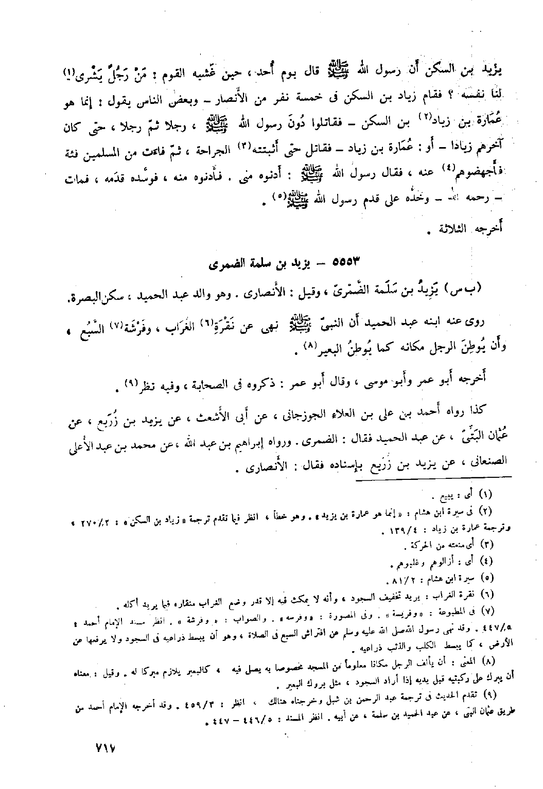 [٢] في سيرة ابن هشام: «إنما هو عمارة بن يزيد» . وهو خطأ، انظر فيما تقدم ترجمة «زياد بن السكن» : ٢/ ٢٧٠، وترجمة عمارة بن زياد: ٤/ ١٣٩.
