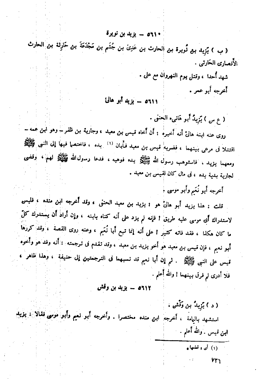 قلت: هَذَا يزيد أَبُو هانئ هُوَ: يزيد بن معبد الحنفي، وقد أخرجه ابن منده، فليس لاستدراك أبي موسى عَلَيْهِ طريق! فإنه لَمْ يزد عَلَى أَنَّهُ كناه بابنه، وإن أراد أن يستدرك كل ما كَانَ هكذا، فقد فاته كَثِير! عَلَى أَنَّهُ إنما تبع أبا نعيم، وَعَنْهُ روى القصة، وقد كررها أبو نعيم، فإن قيس بن معبد هُوَ أخو يزيد بن معبد، وقد تقدم فِي ترجمته: أَنَّهُ وفد هُوَ وأخوه قيس عَلَى النَّبِيّ صَلَّى اللَّهُ عَلَيْهِ وَسَلَّمَ. ثُمَّ إن أبا نعيم قد نسبهما فِي الترجمتين إلى حنيفة، وهذا ظاهر، فلا أدري لَمْ فرق بينهما! والله أعلم.