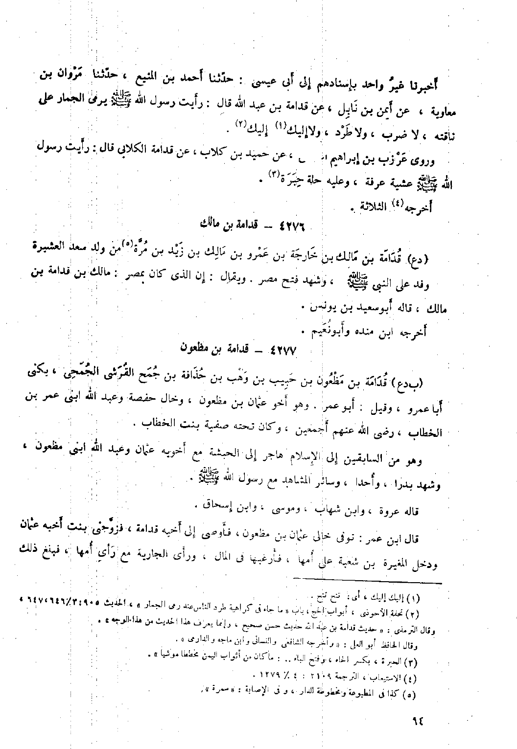 أَخْبَرَنَا غَيْرُ وَاحِدٍ بِإِسْنَادِهِمْ إِلَى أَبِي عِيسَى: حَدَّثَنَا أَحْمَدُ بْنُ الْمَنِيعِ، حَدَّثَنَا مَرْوَانُ بْنُ مُعَاوِيَةَ، عَنْ أَيْمَنَ بْنِ نَابِلٍ، عَنْ قُدَامَةَ بْن عَبْد اللَّهِ قَالَ: رَأَيْتُ رَسُول اللَّهِ صلى الله عليه وآله وَسَلَّمَ يَرْمِي الْجِمَارَ عَلَى نَاقَتِهِ، لا ضَرْبَ، وَلا طَرْدَ، وَلا إِلَيْكَ [١] إِلَيْكَ [٢] .