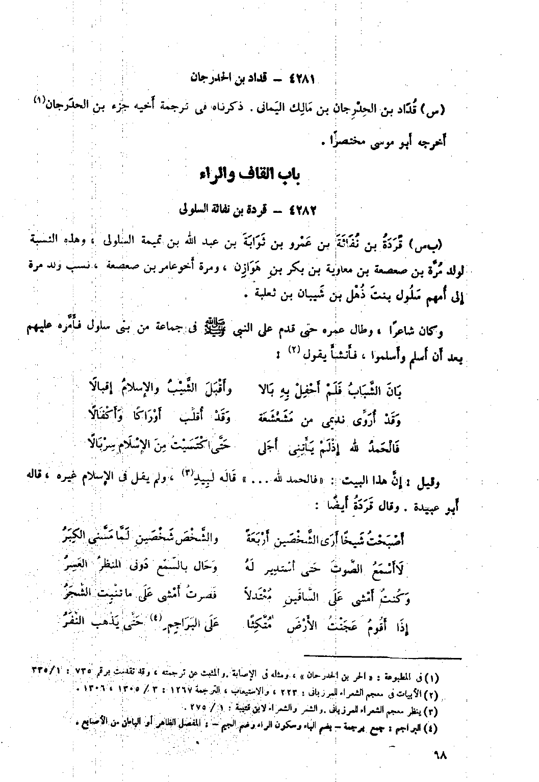 [٢] الأبيات في معجم الشعراء المرزباني: ٢٢٣، والاستيعاب، الترجمة ١٢٦٧: ٣/ ١٣٠٥، ١٣٠٦.