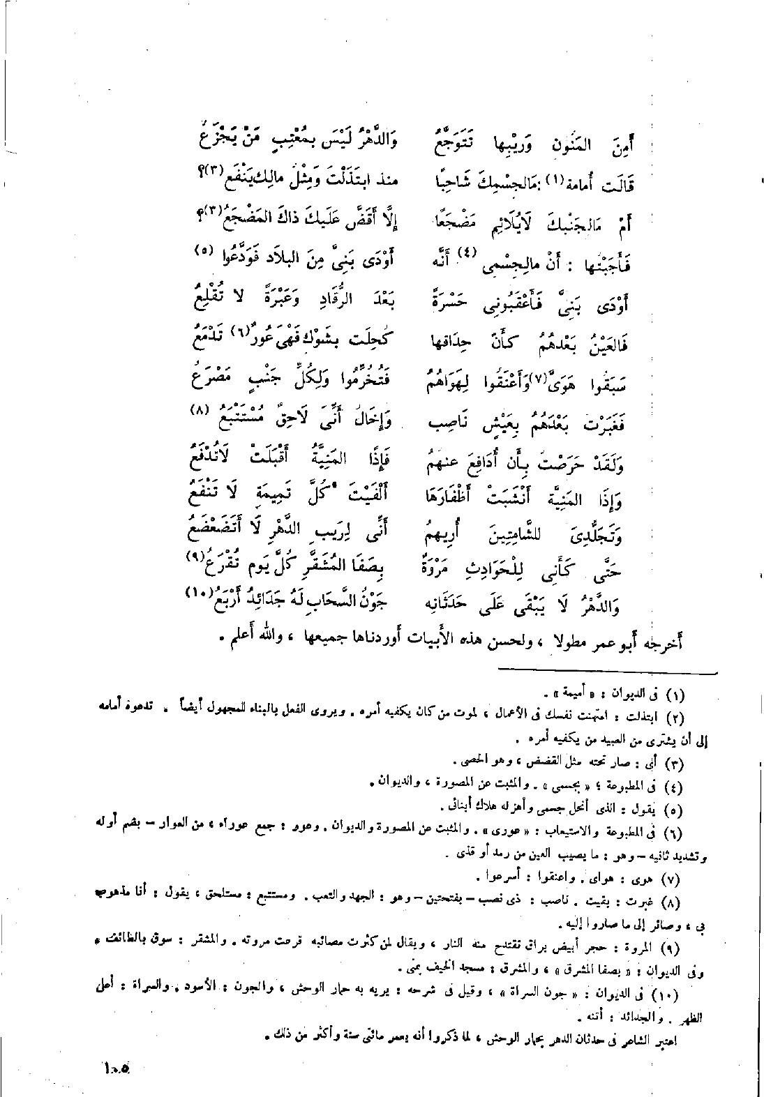 اعتبر الشاعر في حدثان الدهر بحمار الوحش، لما ذكروا أنه يعمر مائتي سنة وأكثر من ذلك.
