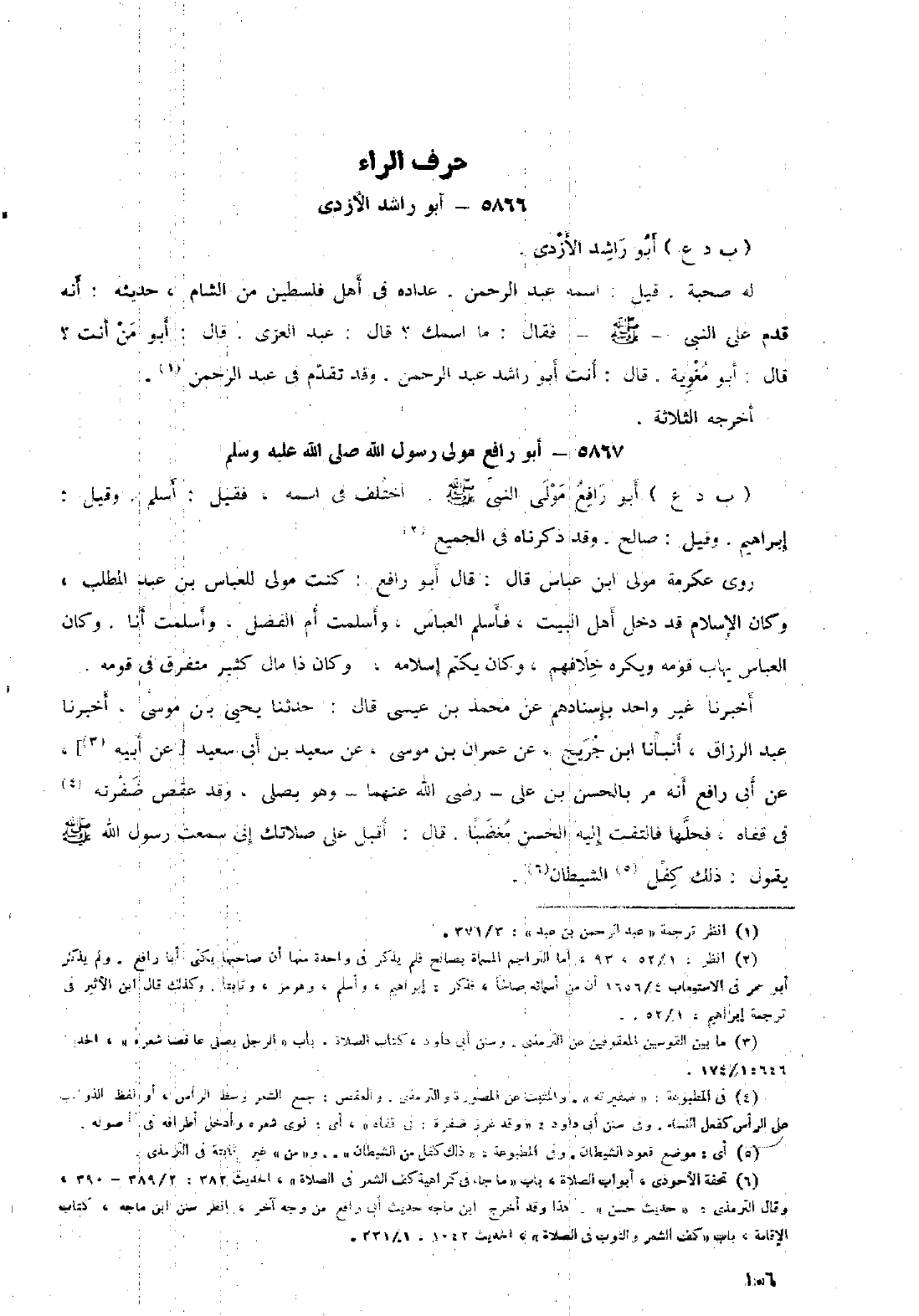[٢] انظر: ١/ ٥٢، ٩٣، أما التراجم المسماة بصالح فلم يذكر في واحدة منها أن صاحبها يكنى أبا رافع. ولم يذكر أبو عمر في الاستيعاب ٤/ ١٦٥٦ أن من أسمائه صالحا، فذكر: إبراهيم، وأسلم، وهرمز، وثابتا. وكذلك قال ابن الأثير في ترجمة إبراهيم: ١/ ٥٢.