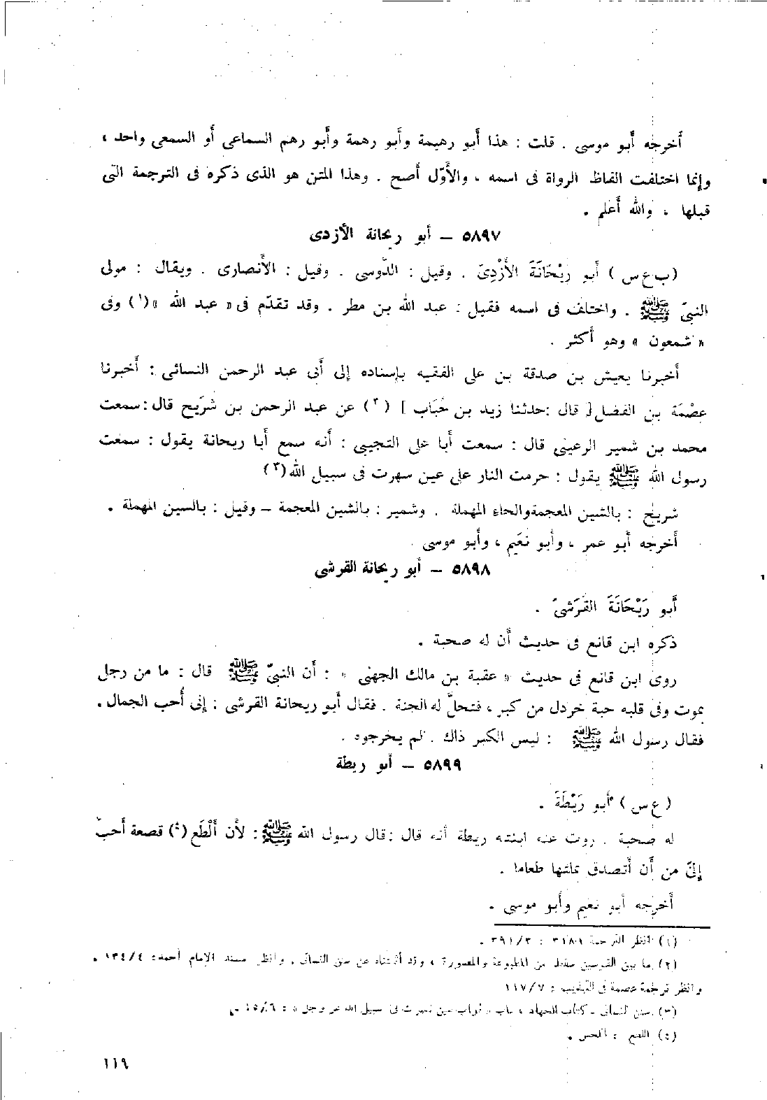 (ب ع س) أبو ريحانة الأَزْدِيّ. وقيل: الدوسي. وقيل: الأنصاري. ويقال: مولى النَّبِيّ صَلَّى اللَّهُ عَلَيْهِ وَسَلَّمَ. واختلف فِي اسمه فقيل: عبد الله بن مطر. وقد تقدم فِي «عبد الله» [١] وَفِي «شمعون» وهو أكثر.