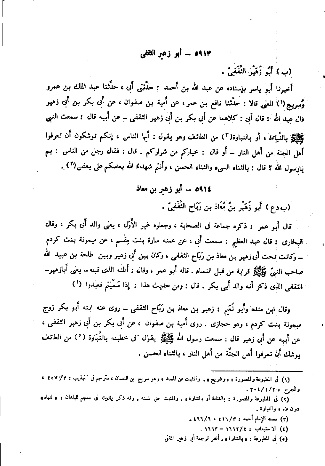 [٥] في المطبوعة: «بالثناوة» . انظر ترجمة أبى زهير الثقفي.