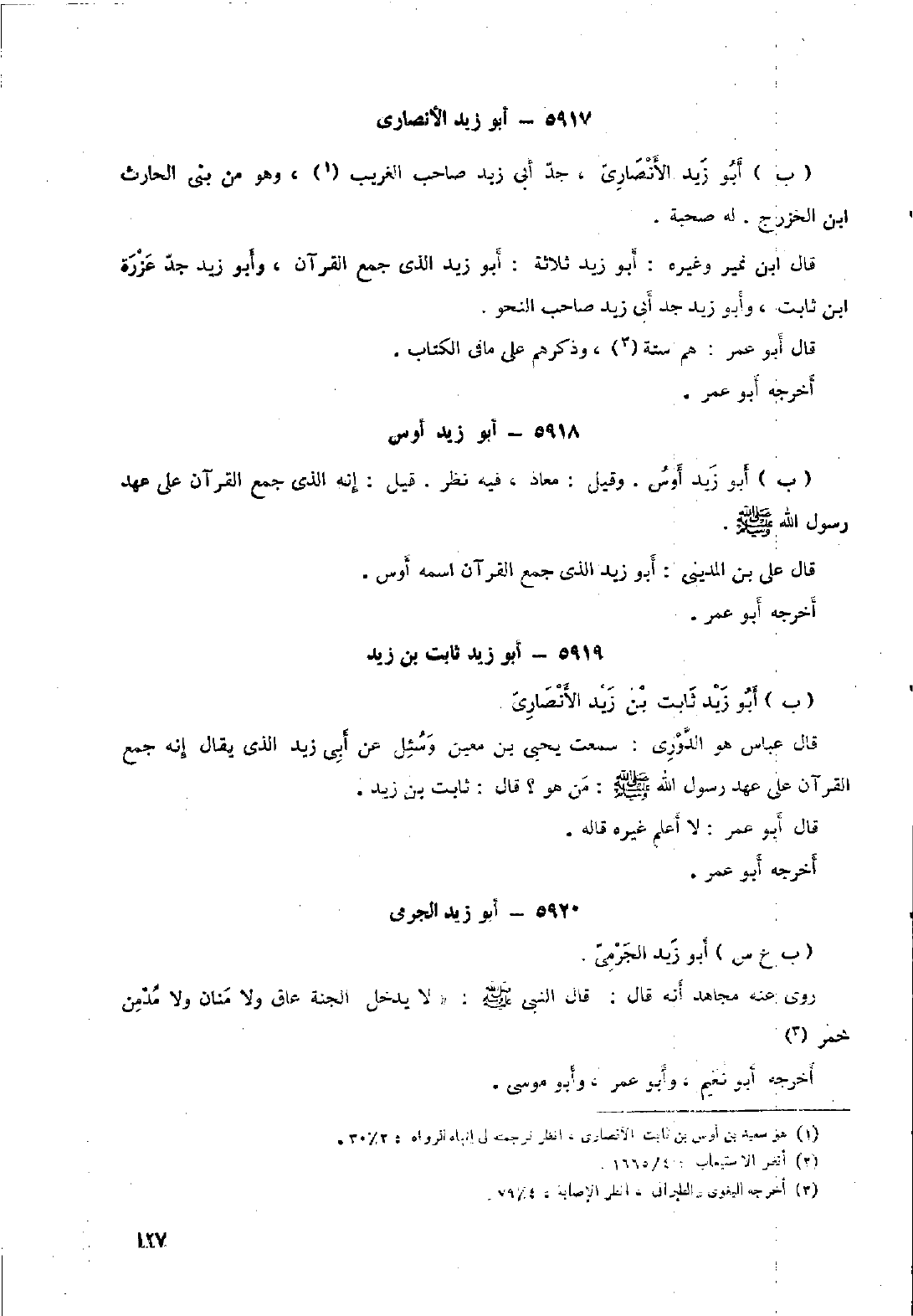 قَالَ ابن نمير وغيره: أبو زيد ثلاثة: أَبُو زيد الَّذِي جمع القرآن، وأبو زيد جدّ عزرة ابن ثابت، وَأَبُو زيد جد أبي زيد صاحب النحو.