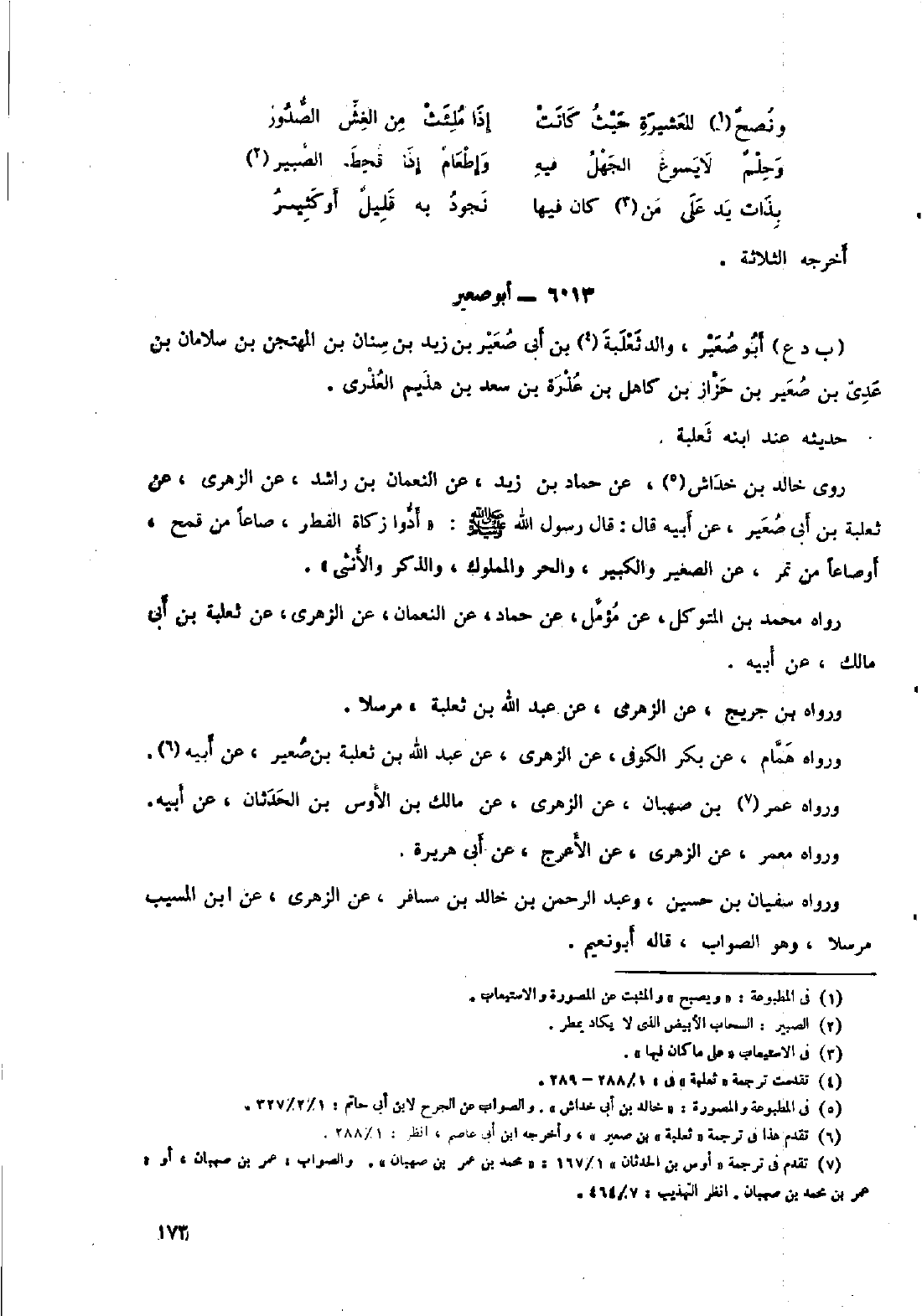 [٦] تقدم هذا في ترجمة «ثعلبة» بن صعير» ، وأخرجه ابن أبى عاصم، انظر: ١/ ٢٨٨.
