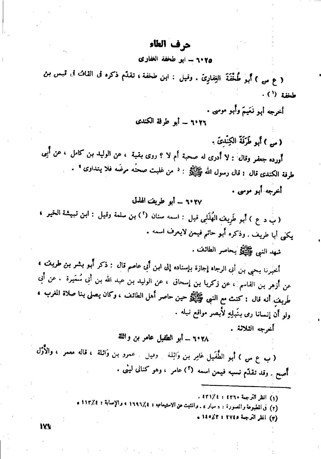 (ب د ع) أبو طريف الهذلي قيل: اسمه سنان [٢] بن سلمة وقيل: ابن نبيشة الخير، يكنى أبا طريف. وذكره أبو حاتم فيمن لا يعرف اسمه.