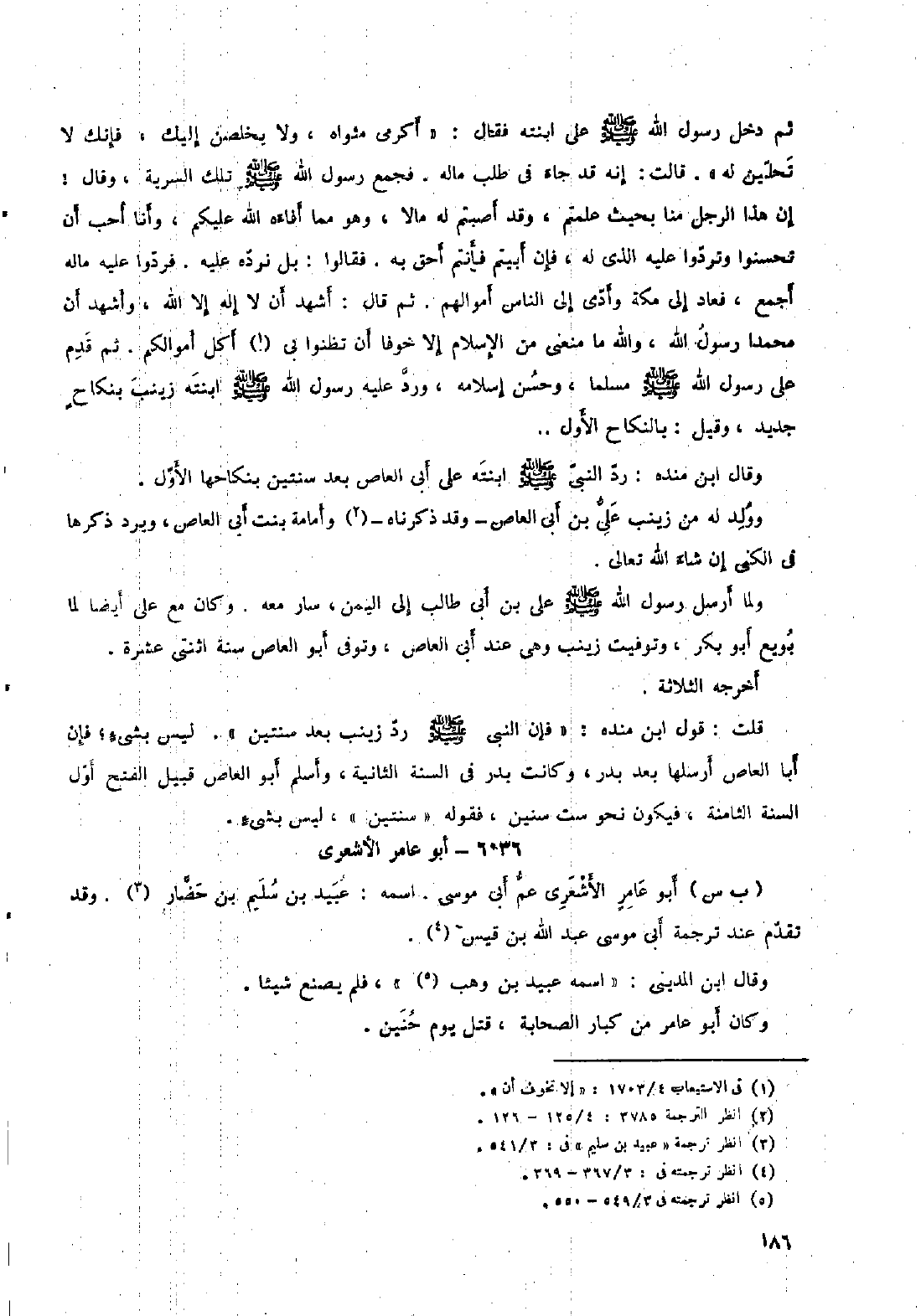 قلت: قول ابن منده: «فإن النبي صلى الله عليه وسلم رد زينب بعد سنتين» . ليس بشيء، فإن أبا العاص أرسلها بعد بدر، وكانت بدر في السنة الثانية، وأسلم أبو العاص قبيل الفتح أول السنة الثامنة، فيكون نحو ست سنين، فقوله «سنتين» ، ليس بشيء.