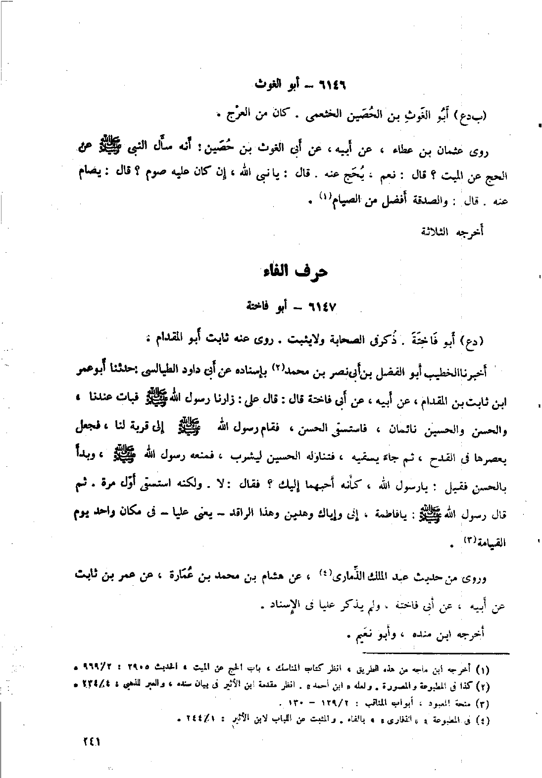وروى من حديث عبد الملك الذماري [٤] ، عن هشام بن محمد بن عمارة، عن عمر بن ثابت عن أبيه، عن أبي فاختة، ولم يذكر عليا في الإسناد. أخرجه ابن منده، وأبو نعيم.