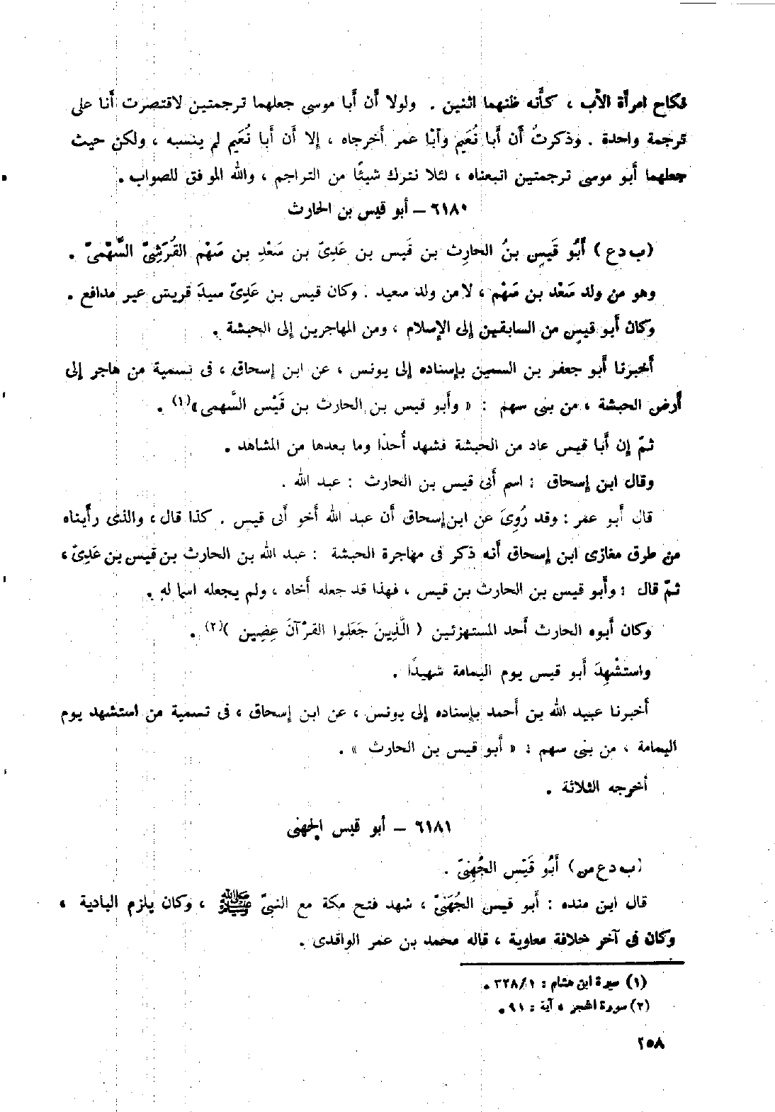 أَخْبَرَنَا أَبُو جَعْفَر بْن السمين بِإِسْنَادِهِ إِلَى يونس، عَنِ ابْنِ إِسْحَاق، فِي تسمية من هاجر إِلَى أرض الحبشة، من بني سهم: «وأبو قيس بن الحارث بن قيس السهمي» [١] .