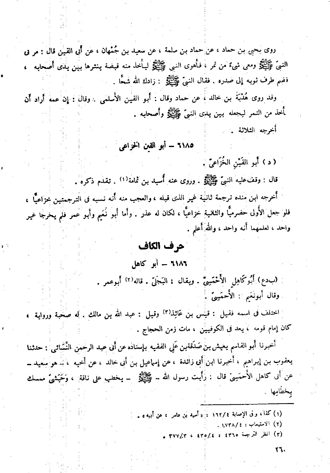 أخرجه ابن منده ترجمة ثانية غير الذي قبله، والعجب منه أنه نسبه في الترجمتين خزاعيا، فلو جعل الأولى حضرميا والثانية خزاعيا، لكان له عذر. وأما أبو نعيم وأبو عمر فلم يخرجا غير واحد، لعلمهما أنه واحد، والله أعلم.
