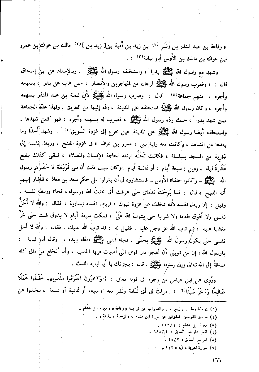 [١] في المطبوعة: «زبير» . والصواب عن ترجمة «رفاعة» وسيرة ابن هشام.