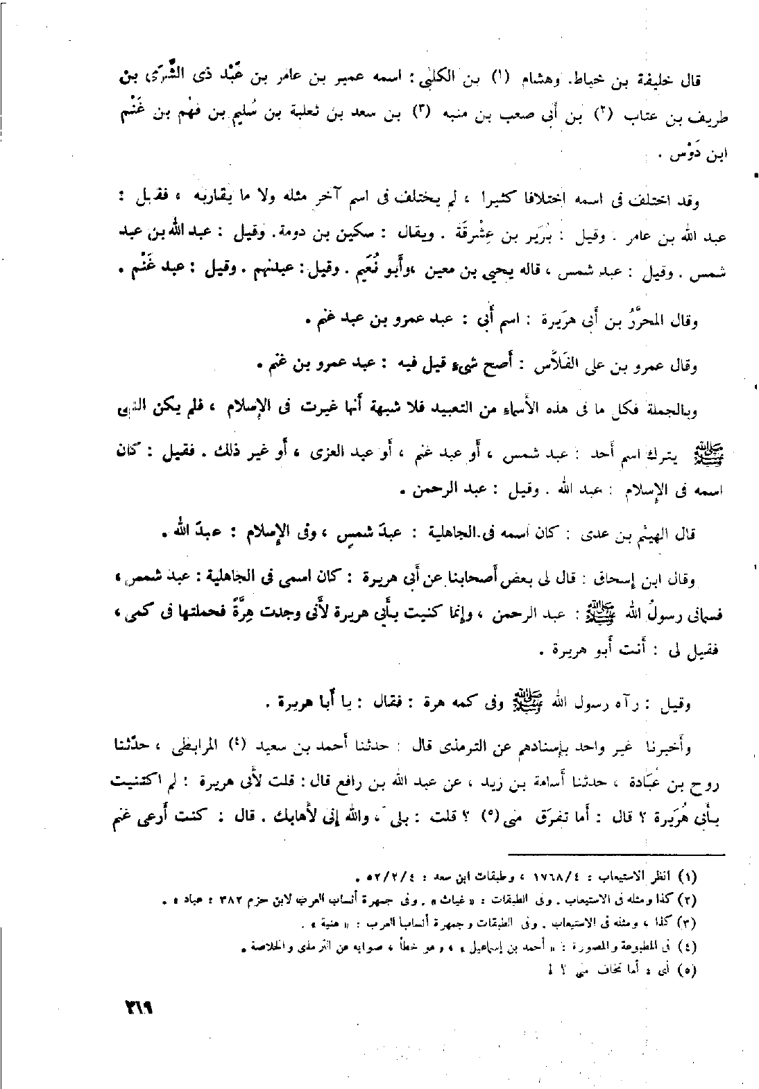 وبالجملة فكل ما في هذه الأسماء من التعبيد فلا شبهة أنها غيرت في الإسلام، فلم يكن النبي صلى الله عليه وسلم يترك اسم أحد: عبد شمس، أو عبد غنم، أو عبد العزى، أو غير ذلك. فقيل: كان اسمه في الإسلام: عبد الله. وقيل: عبد الرحمن.