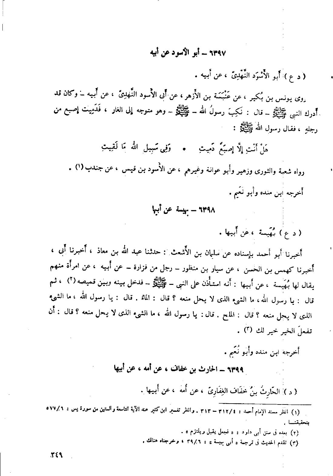 [٣] تقدم الحديث في ترجمة «أبى بهيسة» : ٦/ ٣٩، وخرجناه هنالك.