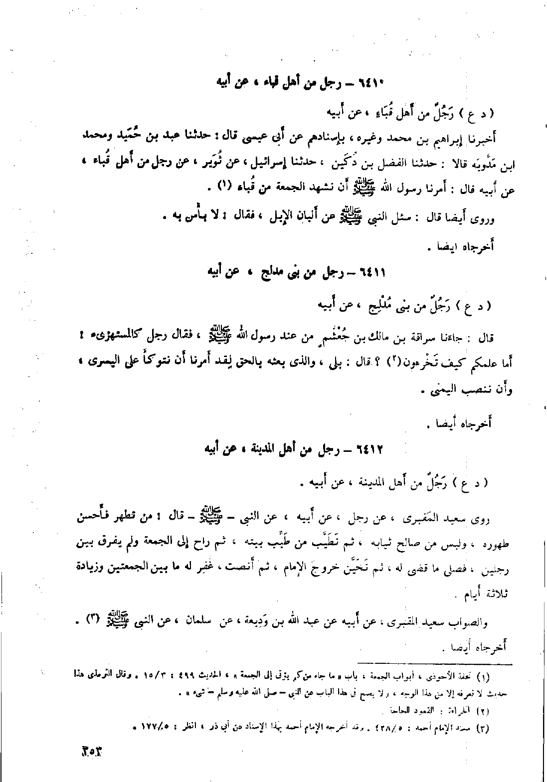 أَخْبَرَنَا إِبْرَاهِيمُ بْنُ مُحَمَّدٍ وَغَيْرُهُ، بِإِسْنَادِهِمْ عَنْ أبي عيسى قال: حدثنا عبد بن حميد ومحمد ابن مدويه قالا: حدثنا الفضل بن دكين، حدثنا إسرائيل، عن ثوير، عن رجل من أهل قباء، عن أبيه قال: أمرنا رسول الله صلى الله عليه وسلم إن نشهد الجمعة من قباء [١] .