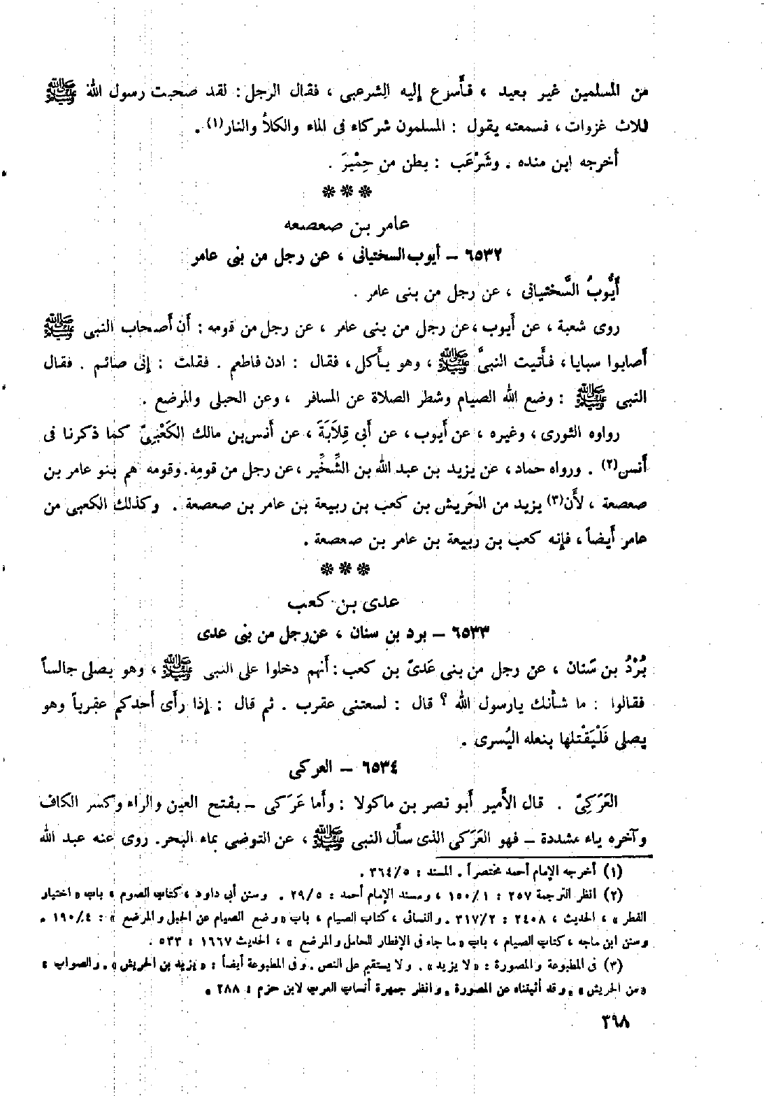 رواه الثوري، وغيره، عن أيوب، عَنْ أَبِي قِلابَةَ، عَنْ أَنَسِ بْنِ مَالِكٍ الكعبي كما ذكرنا في أنس [٢] . ورواه حماد، عَنْ يَزِيدَ بْنِ عَبْدِ اللَّهِ بْنِ الشِّخِّيرِ، عن رجل من قومه. وقومه هم بنو عامر بن صعصعة، لأن [٣] يزيد من الحريش بْن كعب بْن ربيعة بْن عامر بْن صعصعة. وكذلك الكعبي من عامر أيضا، فإنه كعب بْن ربيعة بْن عامر بْن صعصعة.