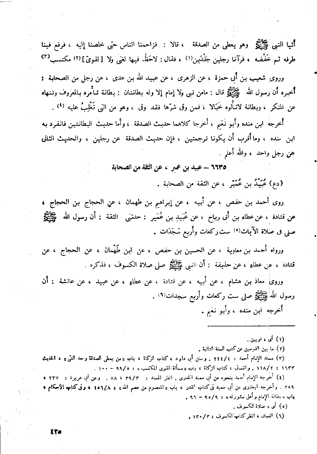 ٦٦٣٥- عبيد بن عمير، عن الثقة من الصحابة