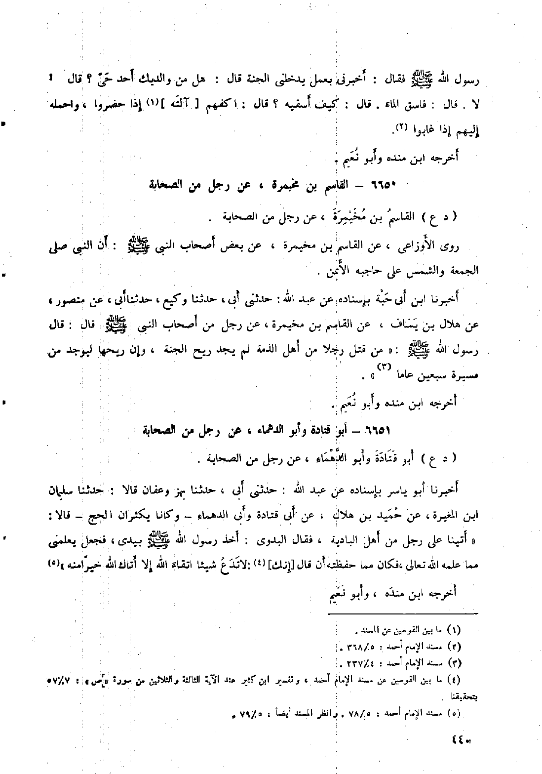 [٥] مسند الإمام أحمد: ٥/ ٧٨. وانظر المسند أيضا: ٥/ ٧٩.