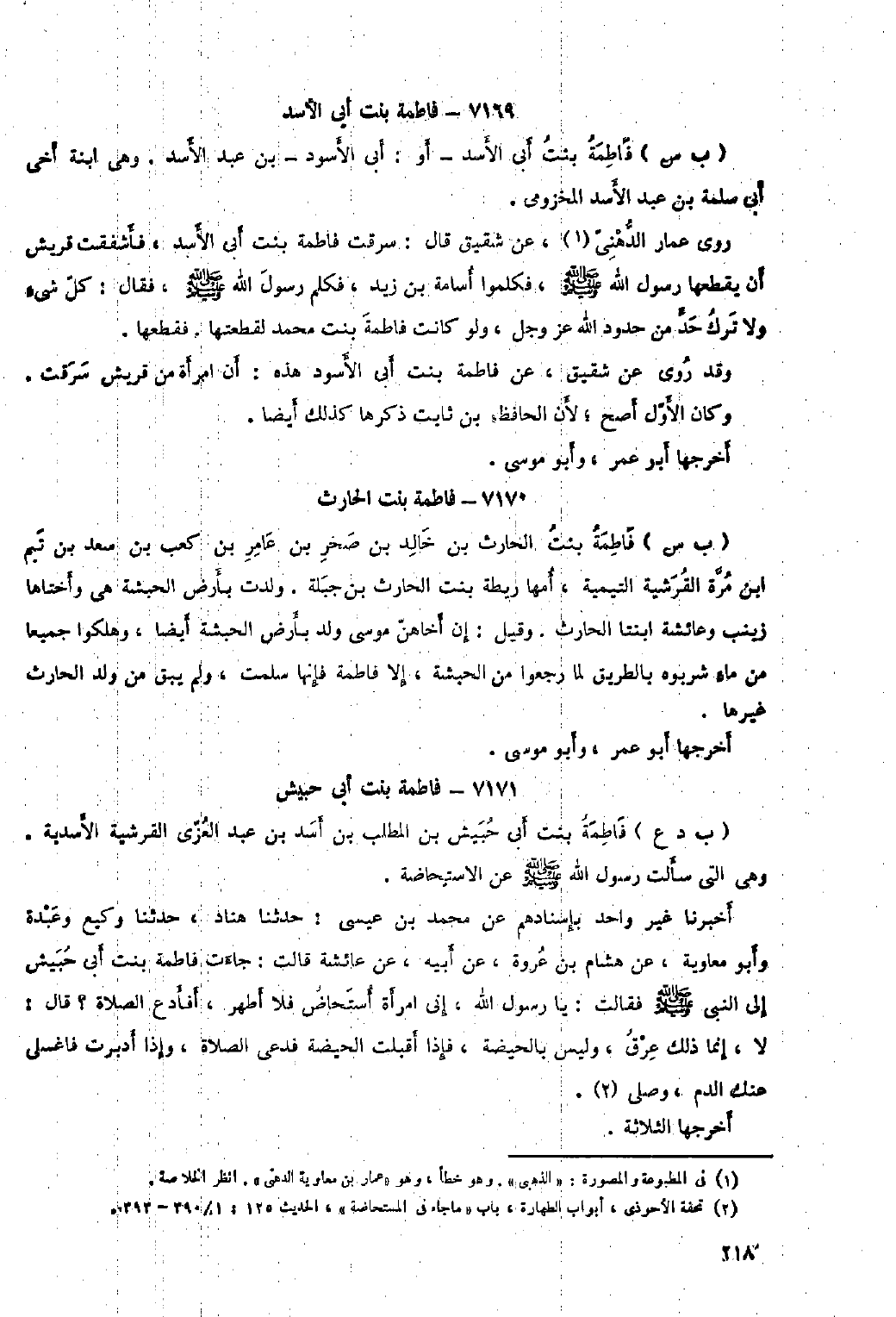 (ب د ع) فاطمة بنت أَبِي حبيش بْن المطلب بْن أسد بْن عبد العزى القرشية الأسدية.
