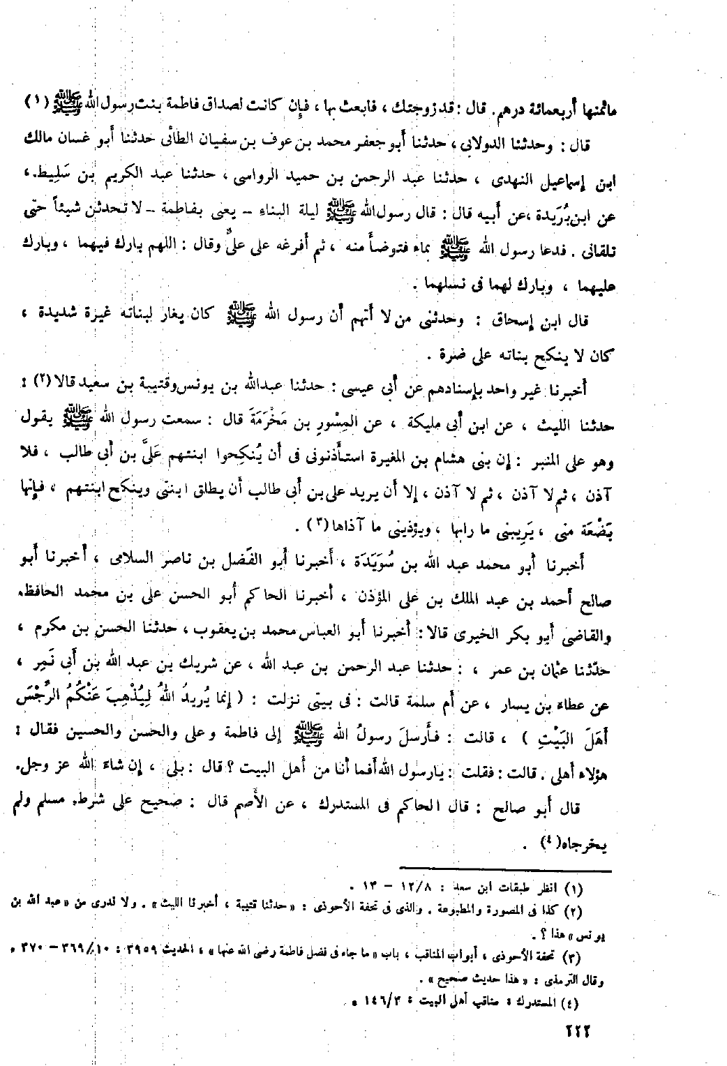 [٣] تحفة الأحوذي، أبواب المناقب، باب «ما جاء في فضل فاطمة رضى الله عنها» ، الحديث ٣٩٥٩: ١٠/ ٣٦٩- ٣٧٠.