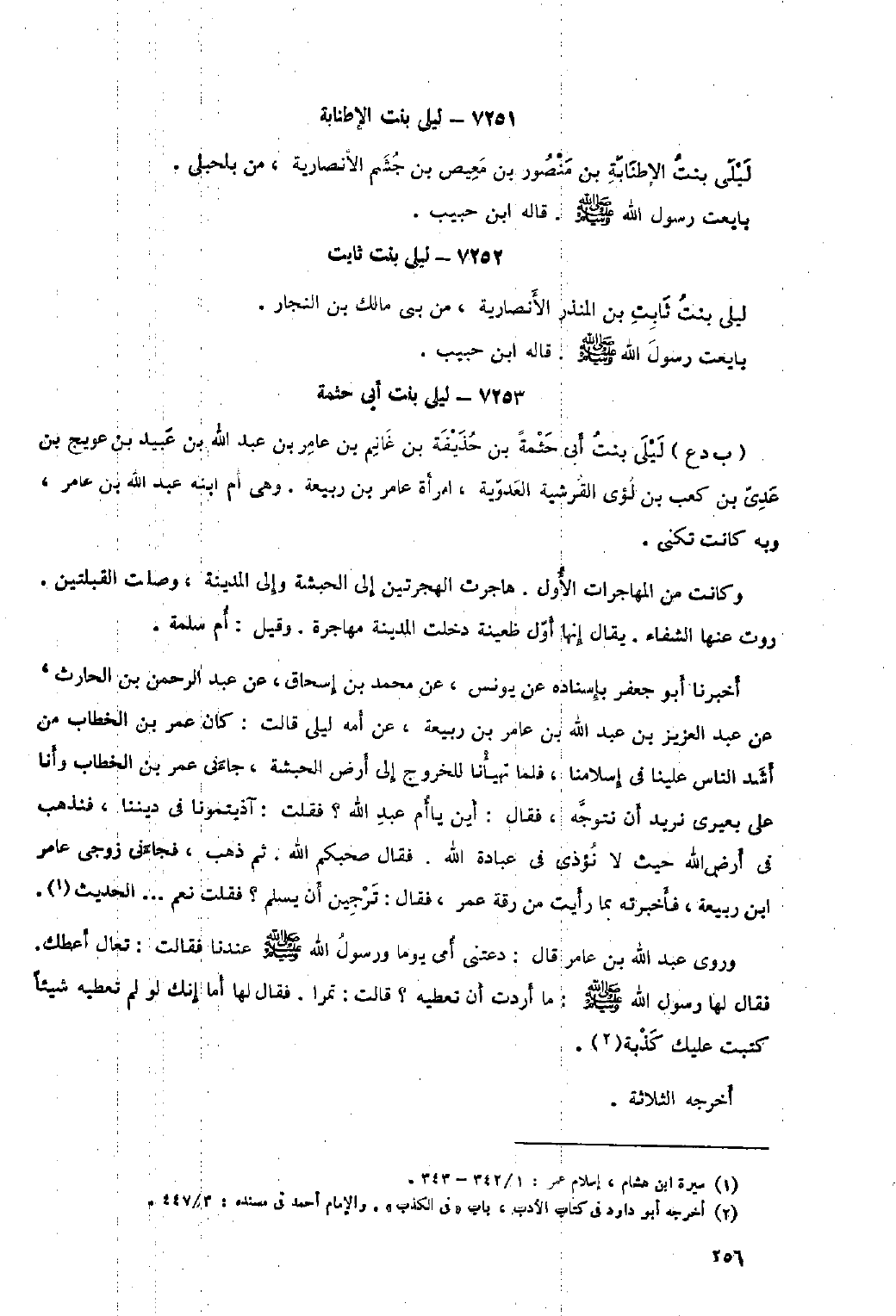 وكانت من المهاجرات الأول. هاجرت الهجرتين إلى الحبشة وإلى المدينة، وصلت القبلتين.