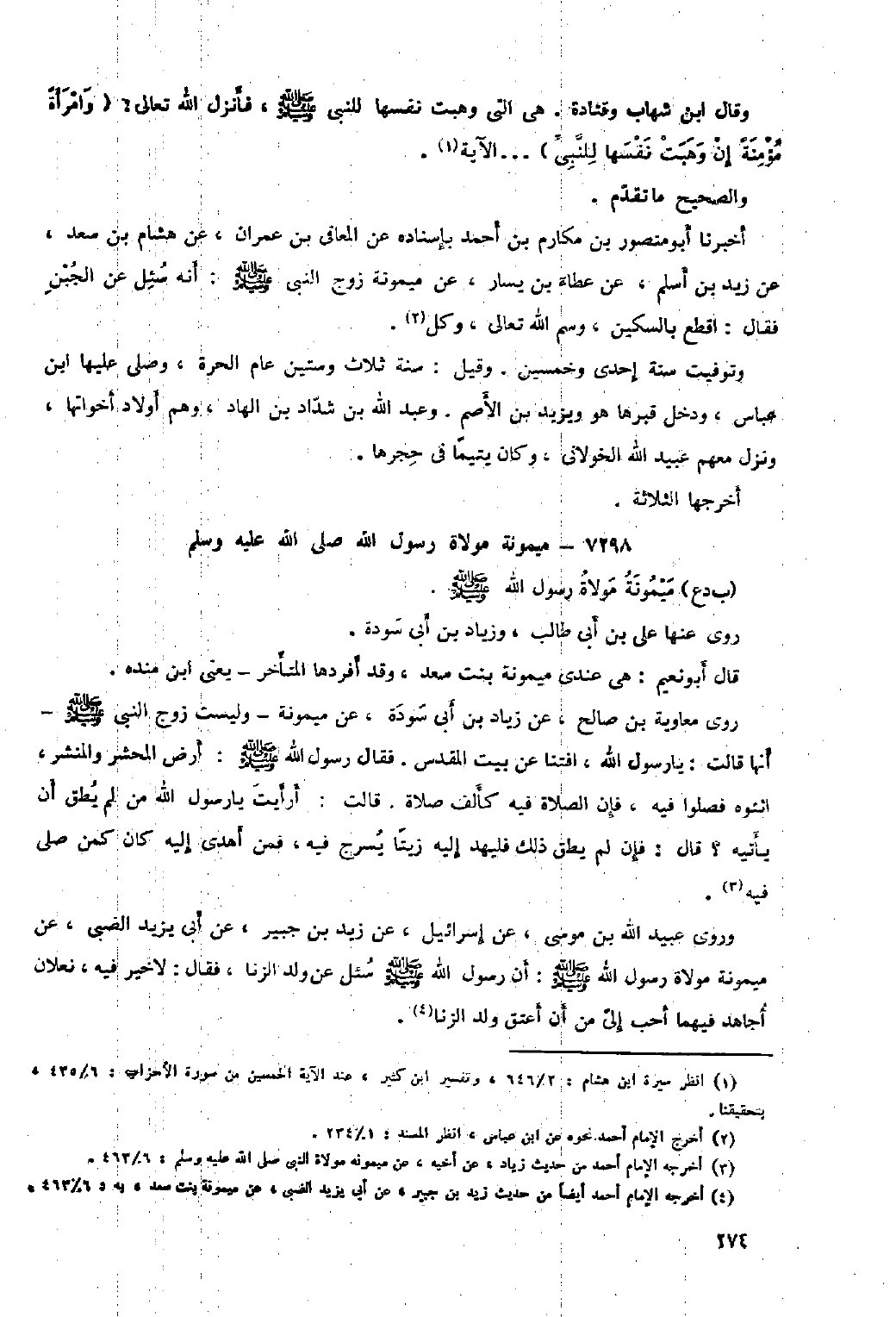 ٧٢٩٨- ميمونة مولاة رَسُول اللَّهِ صَلَّى اللَّهُ عَلَيْهِ وَسَلَّمَ