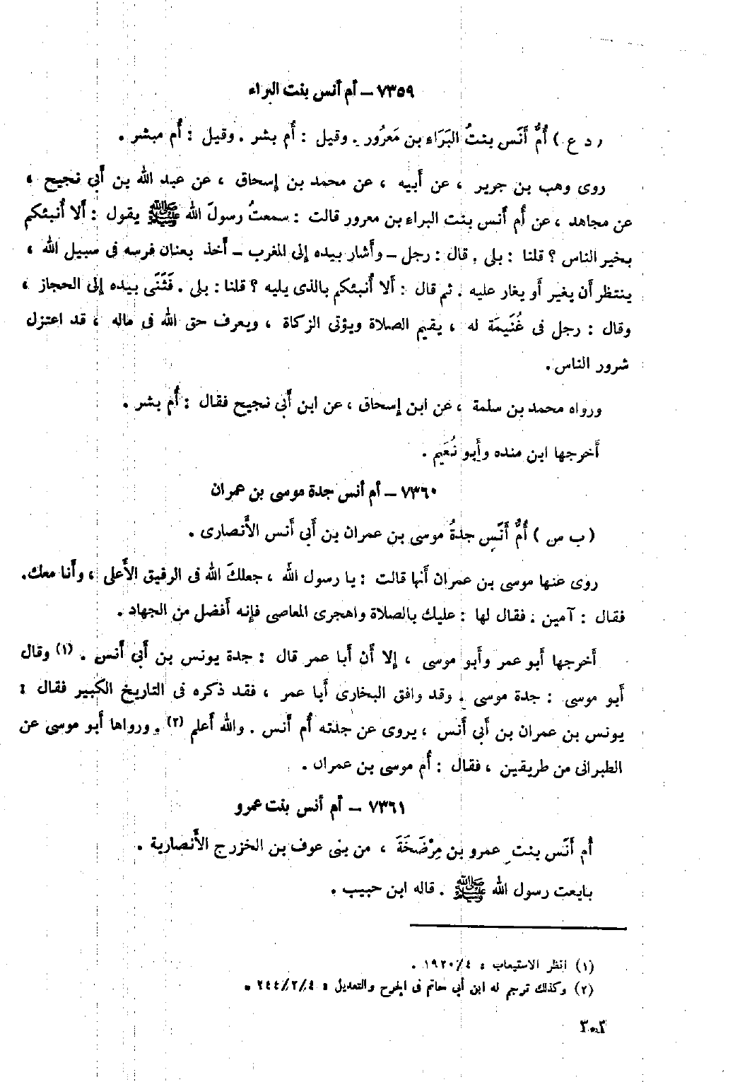 ٧٣٥٩- أم أنس بنت البراء