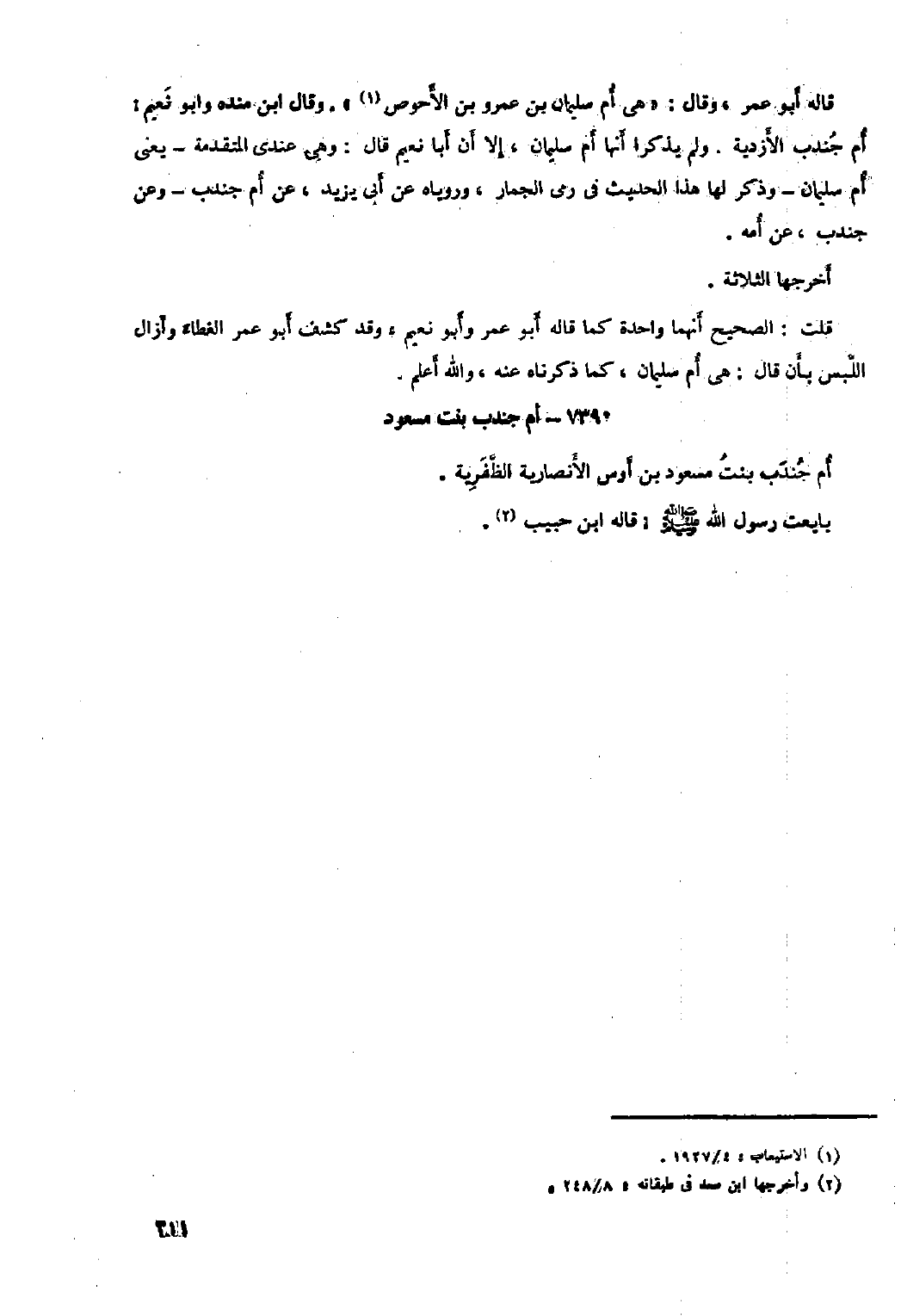 قلت: الصحيح أنهما واحدة كما قاله أبو عمر وأبو نعيم، وقد كشف أبو عمر الغطاء وأزال اللبس بأن قال: هي أم سليمان، كما ذكرناه عنه، والله أعلم.