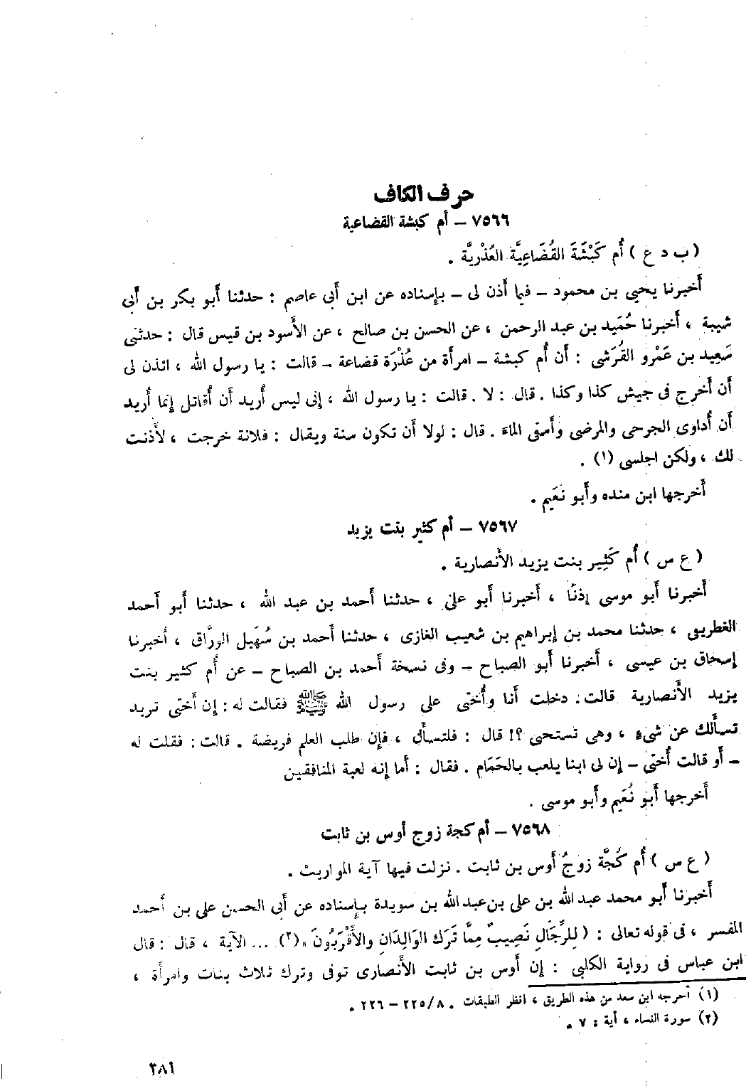 [١] أخرجه ابن سعد من هذه الطريق، انظر الطبقات. ٨/ ٢٢٥- ٢٢٦.