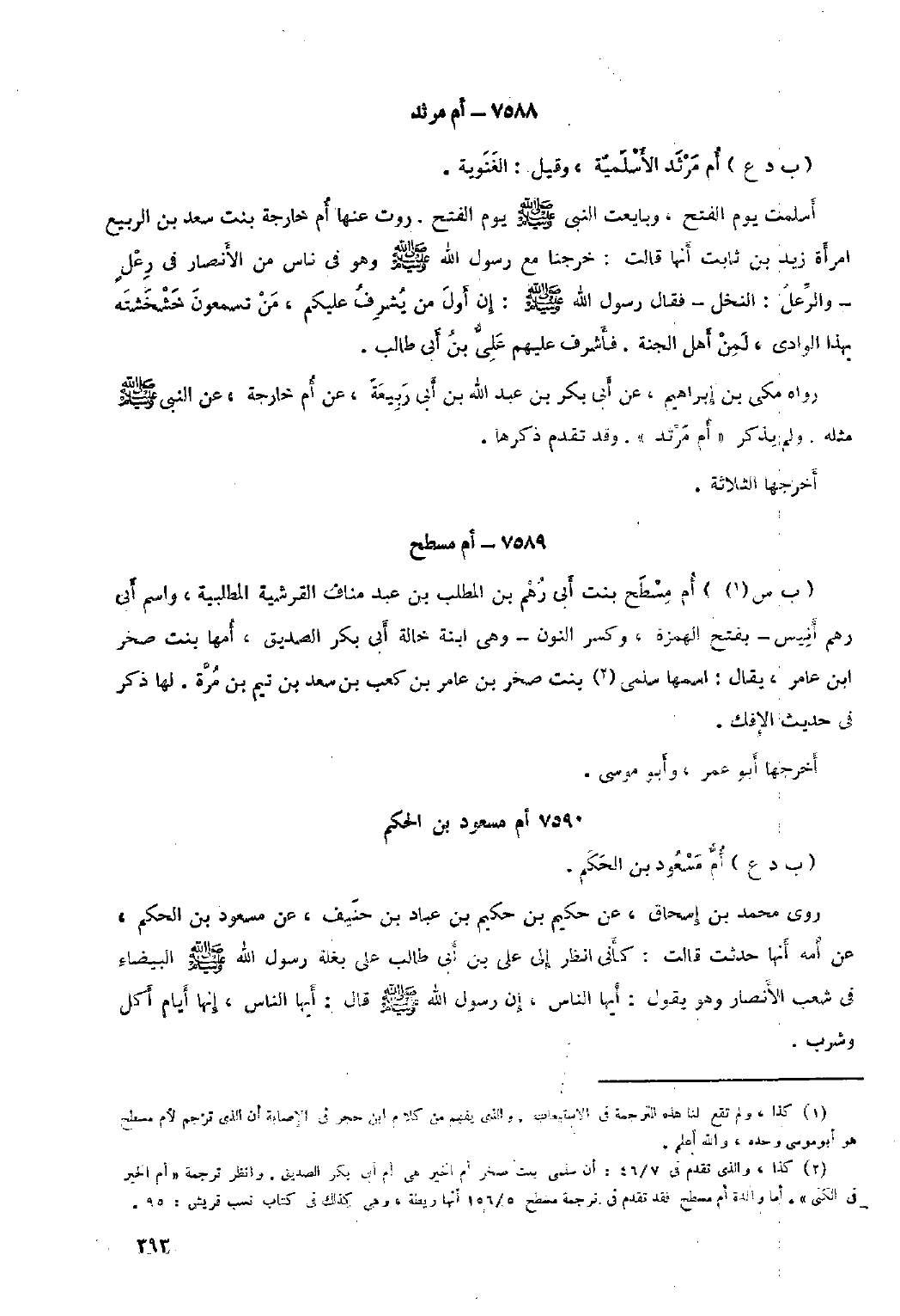 [١] كذا، ولم تقع لنا هذه الترجمة في الاستيعاب. والّذي يفهم من كلام ابن حجر في الإصابة أن الّذي ترجم لأم مسطح هو أبو موسى وحده، والله أعلم.