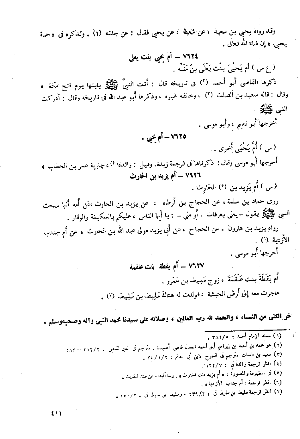 آخر الكنى من النساء، والحمد للَّه رب العالمين، وصلاته على سيدنا محمد النبي وآله وصحبه وسلم.