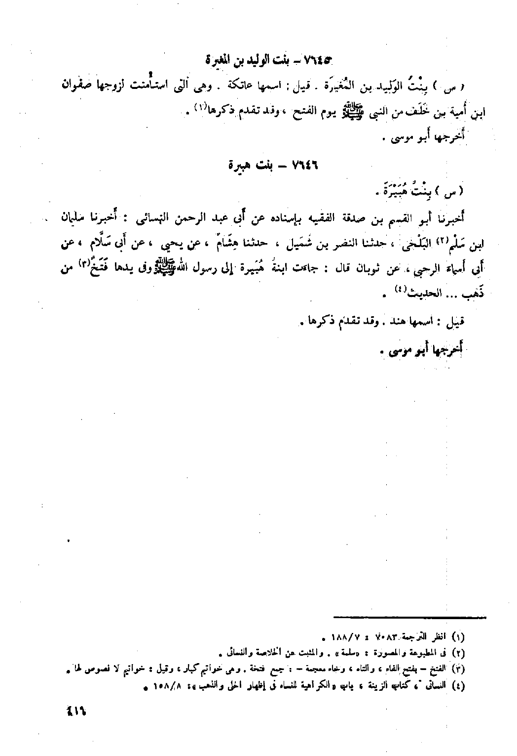 أخبرنا أبو القسم بن صدقة الفقيه بإسناده عن أبي عبد الرحمن النسائي: أخبرنا سليمان ابن سلم [٢] البلخي، حدثنا النضر بن شميل، حدثنا هشام، عَنْ يَحيى، عَنْ أَبِي سلام، عَنْ أَبِي أسماء الرحبي، عن ثوبان قال: جاءت ابنة هبيرة إلى رسول الله صلى الله عليه وسلم وفي يدها فتخ [٣] من ذهب ... الحديث [٤] .