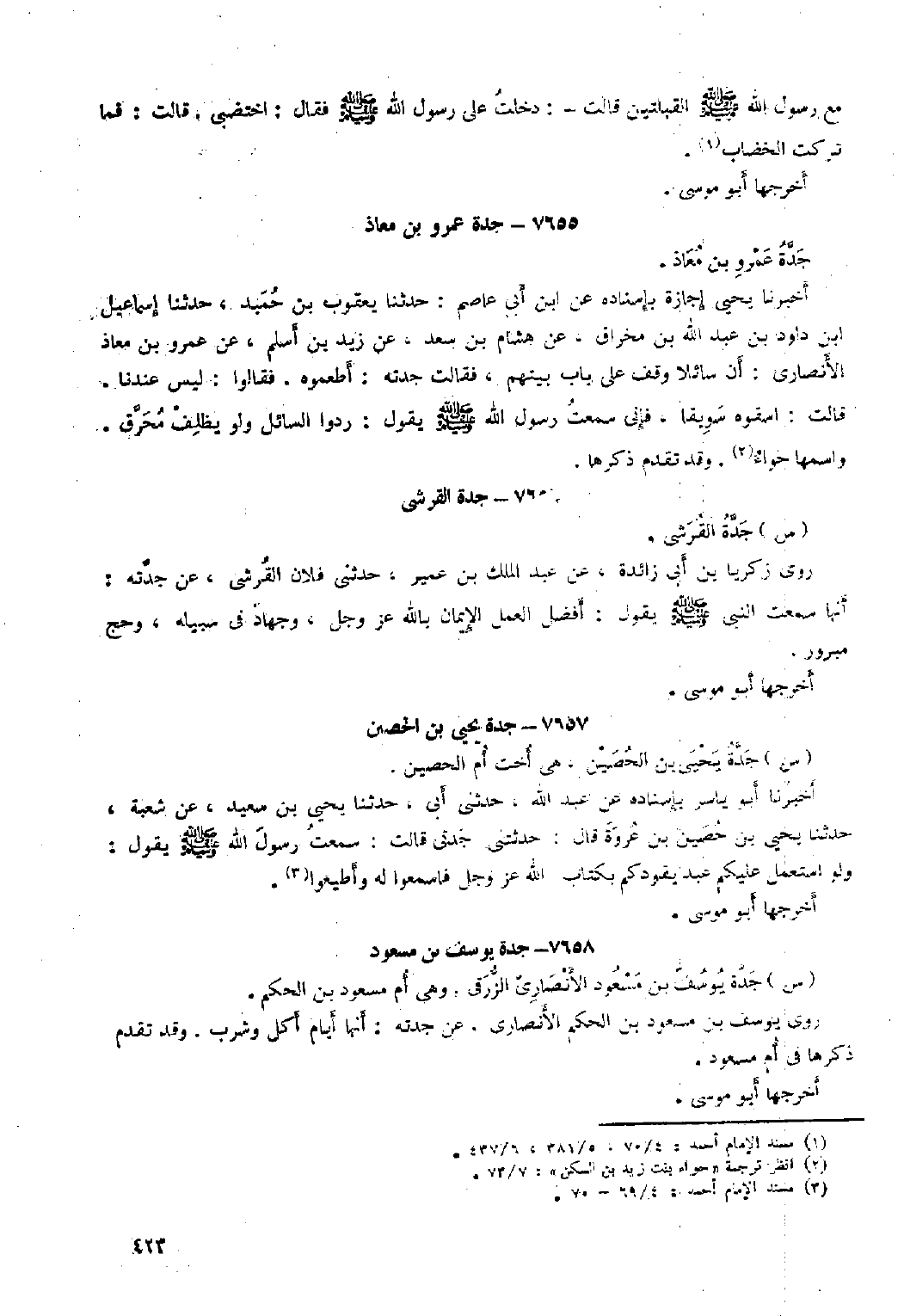[١] مسند الإمام أحمد: ٤/ ٧٠، ٥/ ٣٨١، ٦/ ٤٣٧.